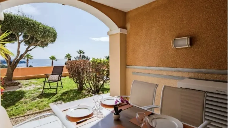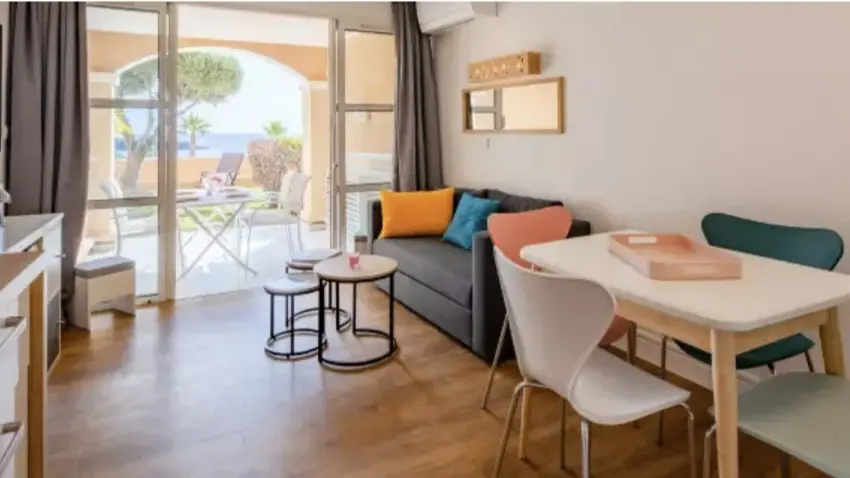 Profitez d’une vue à couper le souffle sur la mer et sur les roches de l’Esterel surplombant les 2 piscines principales : un paysage qui vous enchantera dès votre petit déjeuner. Rénové avec le plus grand soin, posez vos valises dans notre appartement tout confort de 28 m2 avec une capacité d’accueil maximum de 4 personnes.