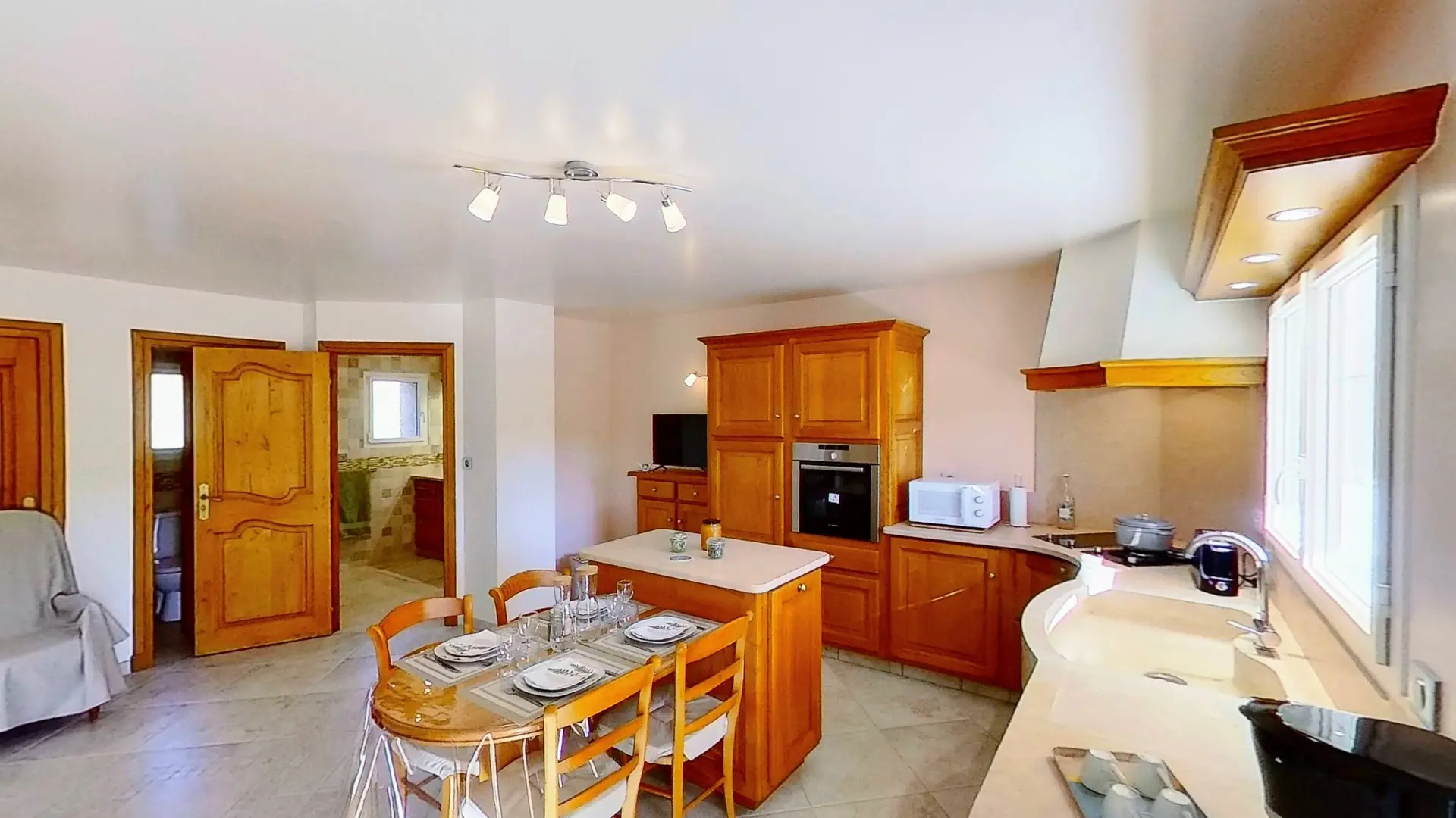 L’appartement, classé meublé de tourisme 1 étoile, se trouve au rez-de-chaussée d’une ancienne bergerie rénovée. Il a été soigneusement aménagé pour garantir votre confort et peut accueillir jusqu’à 4 personnes, idéal pour une famille, un couple ou des amis en quête de tranquillité. Le mobilier en bois confère une ambiance chaleureuse et authentique à l’espace.
