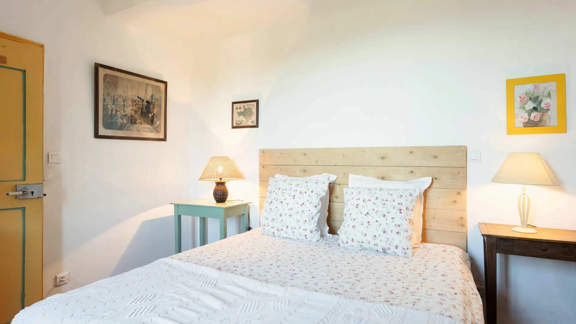 - 1er étage : 1 chambre avec lit double (180 cm, transformable en deux lits simples de 90 cm) avec vue magnifique ; 1 chambre