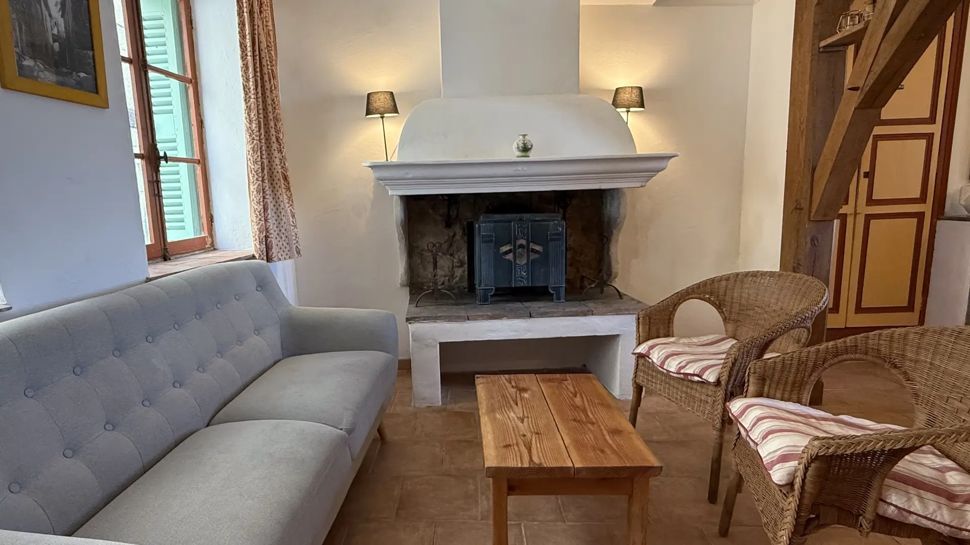 - 2e étage : 1 chambre avec lit double (140 cm) avec vue magnifique ; 1 chambre avec lit simple (90 cm) avec vue sur le village, 1