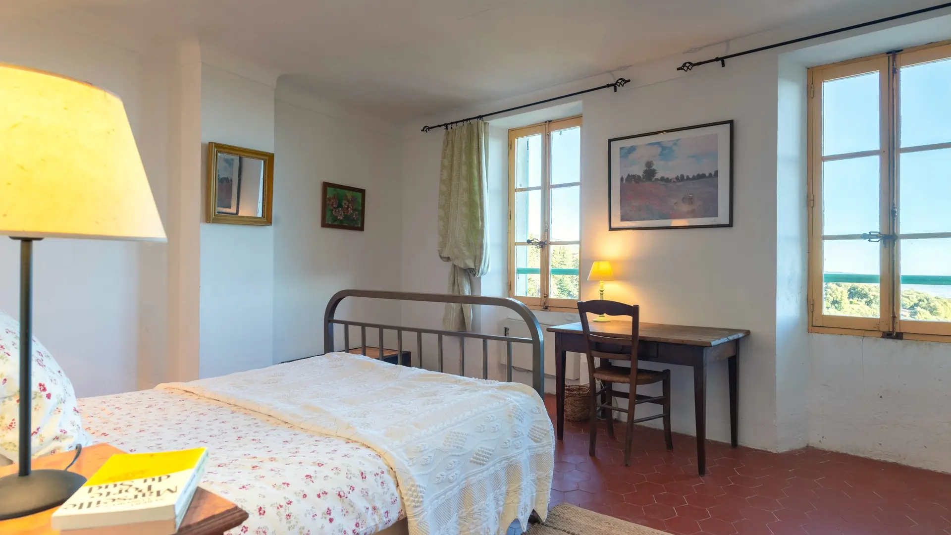 Très lumineuse grâce à son exposition sud-est, elle offre un lever de soleil spectaculaire sur la Méditerranée et une vue à couper le