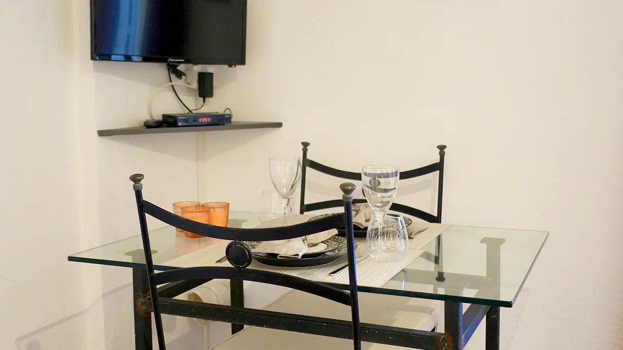 Ce studio de 25 m² comprend une cuisine équipée, une salle de bain privative, la climatisation et un coin extérieur privé. Stationnement sur place. Linge de lit et serviettes fournis.