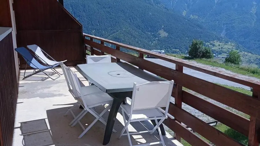 - Grand Balcon exposé sud avec chaises et table, bain de soleil
