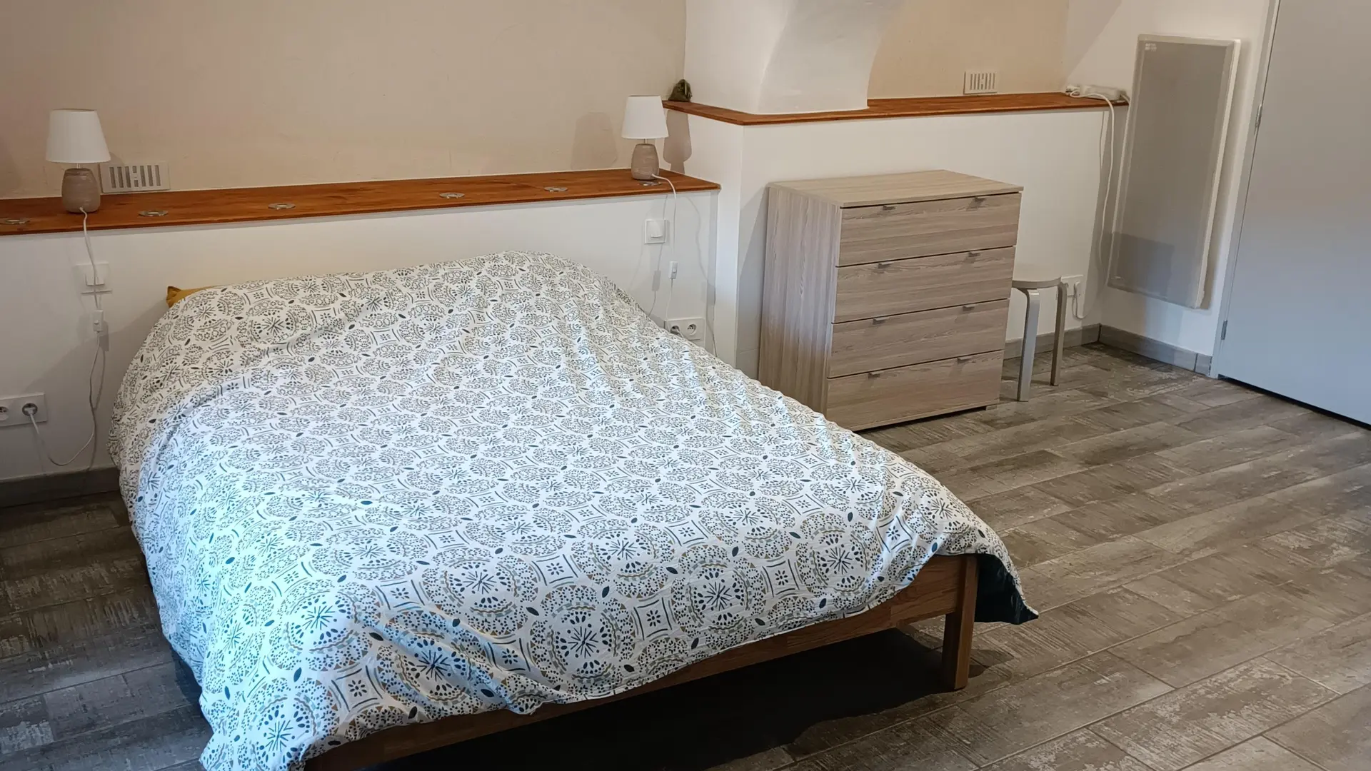 Le logement est situé en rez de jardin avec une entrée privative. Il se compose d'une cuisine ouverte sur le salon. Une grande chambre accueille un lit de 140 cm x 190 cm. Attenantes à la chambre, se trouvent la salle d'eau avec douche à l'italienne et des toilettes séparées. Un jardin privatif s'offre à vous avec une vue magnifique sur le massif de la Blanche, le Mont Colombis, les Monges. Tranquillité et dépaysement assurés lors de votre séjour.