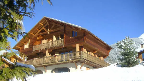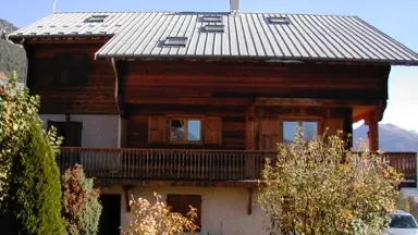 C'est un grand chalet traditionnel en bois massif (Red cedar) comportant deux appartements parfaitement symétriques et indépendants. L’appartement objet de la présente location est celui situé côté ouest nord ouest (ONO), à gauche sur la photo.