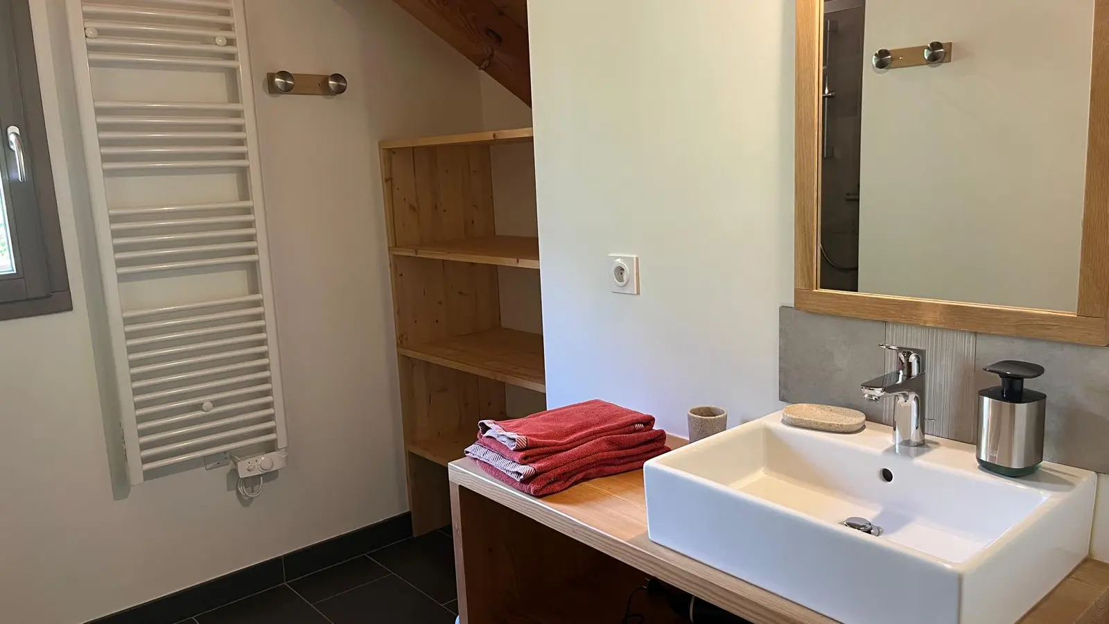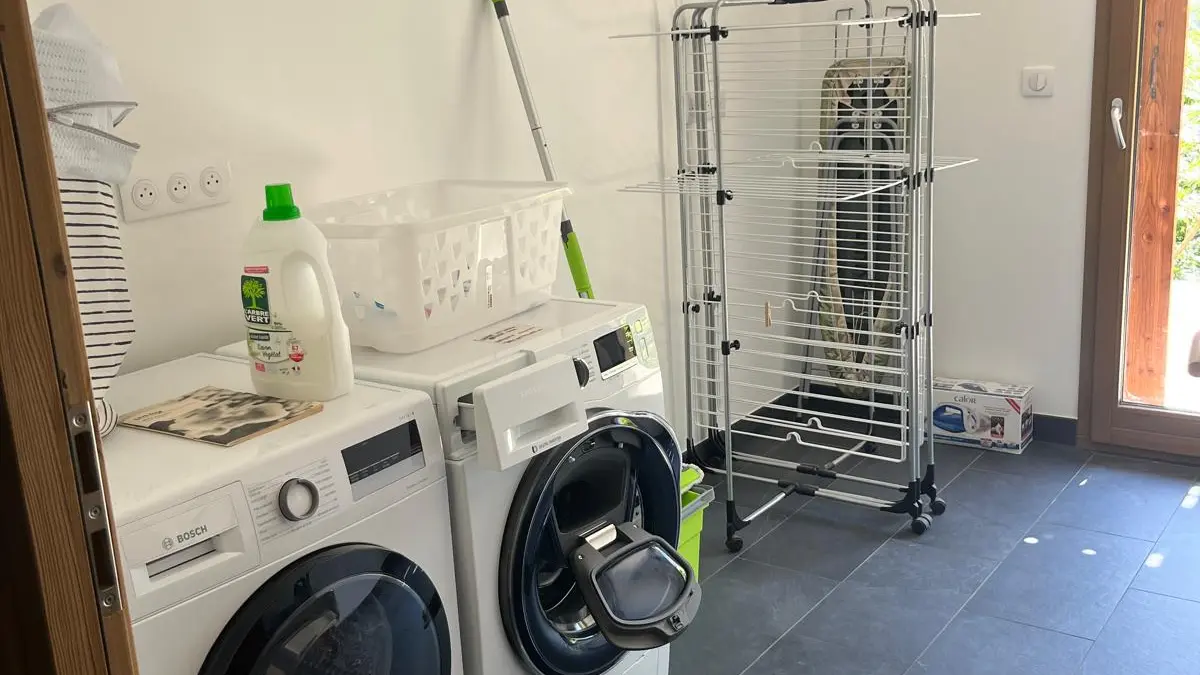 Au rez de jardin, accessible par le chemin piétonnier, vous trouverez une buanderie avec un lave-linge, un sèche-linge et des étendoirs. Une porte extérieure vous permettra d’accéder directement à ce niveau pour les retours de ski ou de randonnées. Vous pourrez y stocker vos équipements de ski et/ou de vélos.