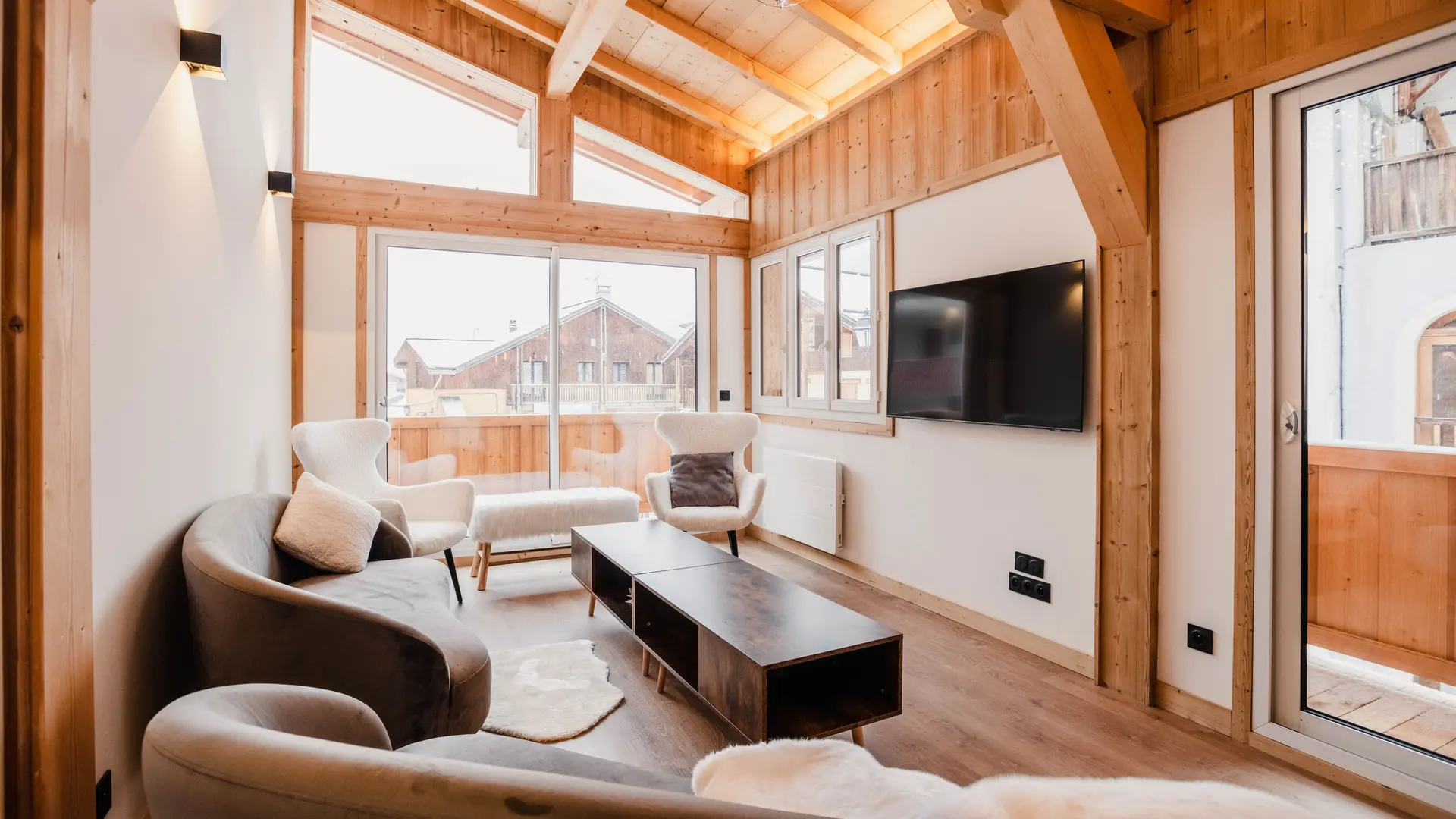 Ce Chalet de village de grand standing construit en 2022 comprend 6 chambres avec 6 salle de bain est au coeur du village , à 100 m des pistes et de l'espace Prarial .