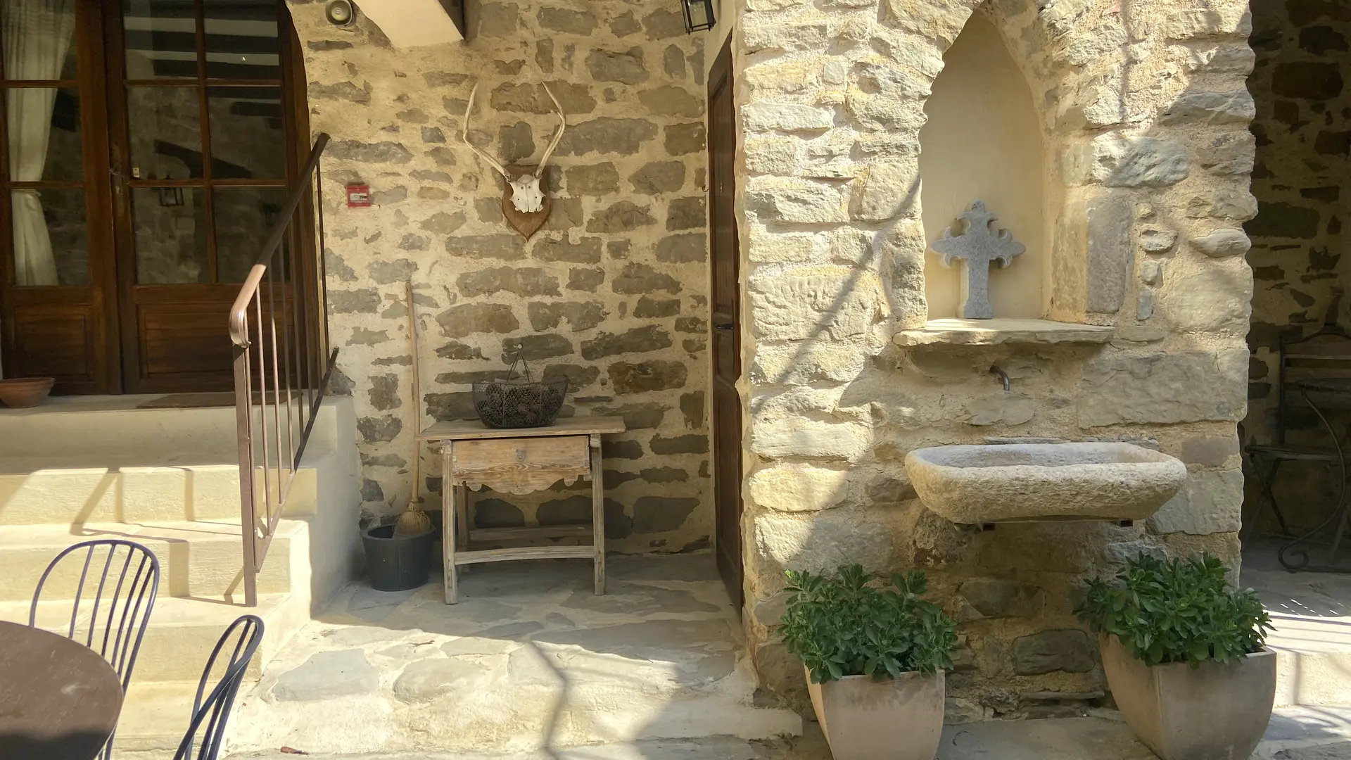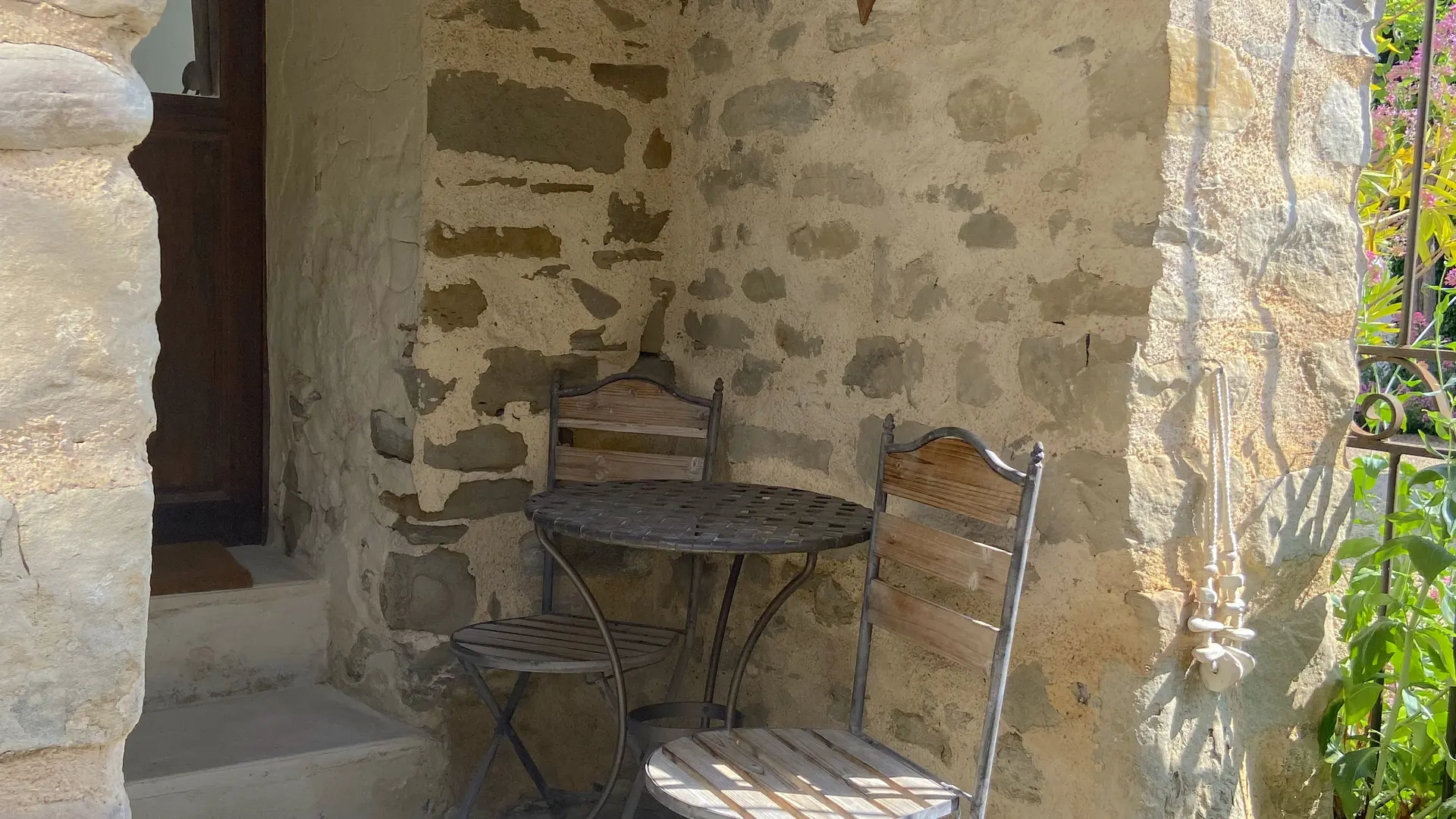 Vous profiterez d’une mini-terrasse privative devant l'entrée de la chambre, aménagée avec table et chaise, parfaite pour un café matinal ou un moment de détente en fin de journée.