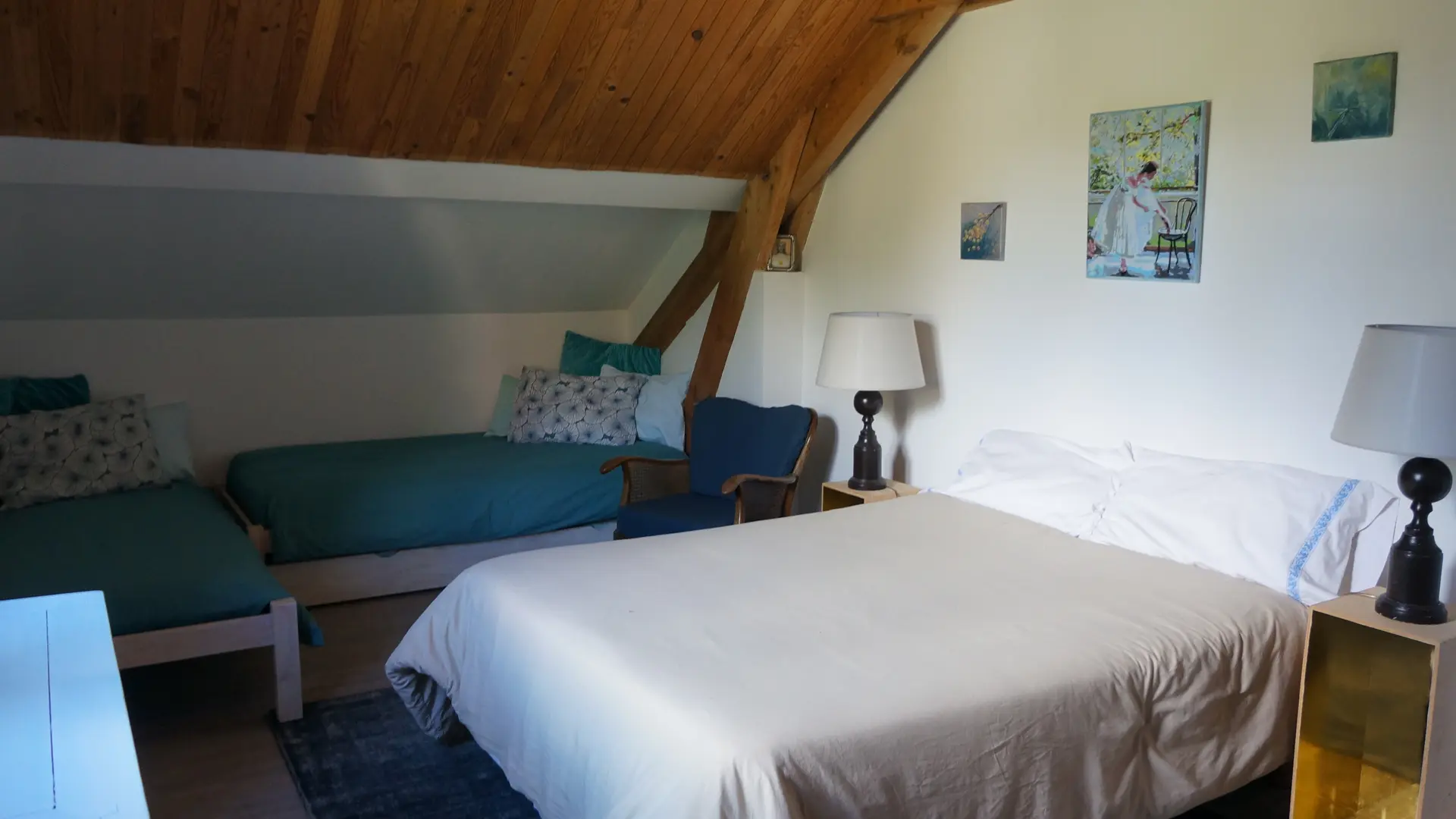 Chambre Sixties: au premier étage une chambre cocooning et chaleureuse avec un lit double et un lit simple.