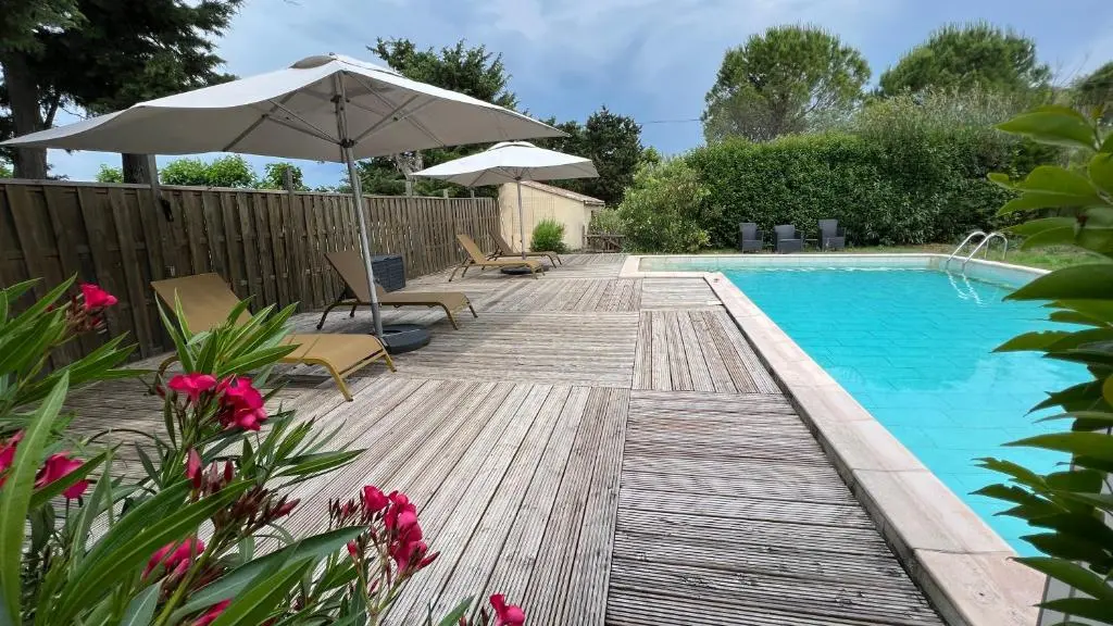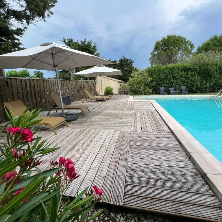 Barbecue, table de jardin, et piscine privée complètent l'ensemble pour des moments de détente sous le soleil.