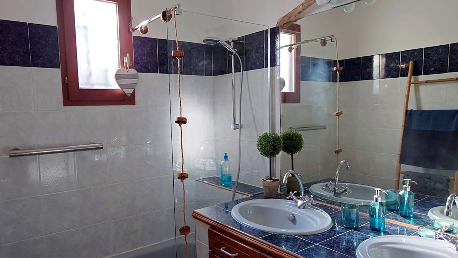 Cette chambre est composée d'un lit Queen size et un lit double standard avec salle d'eau et WC privatifs. Elle comporte également une pièce "petits déjeuners/bureau".