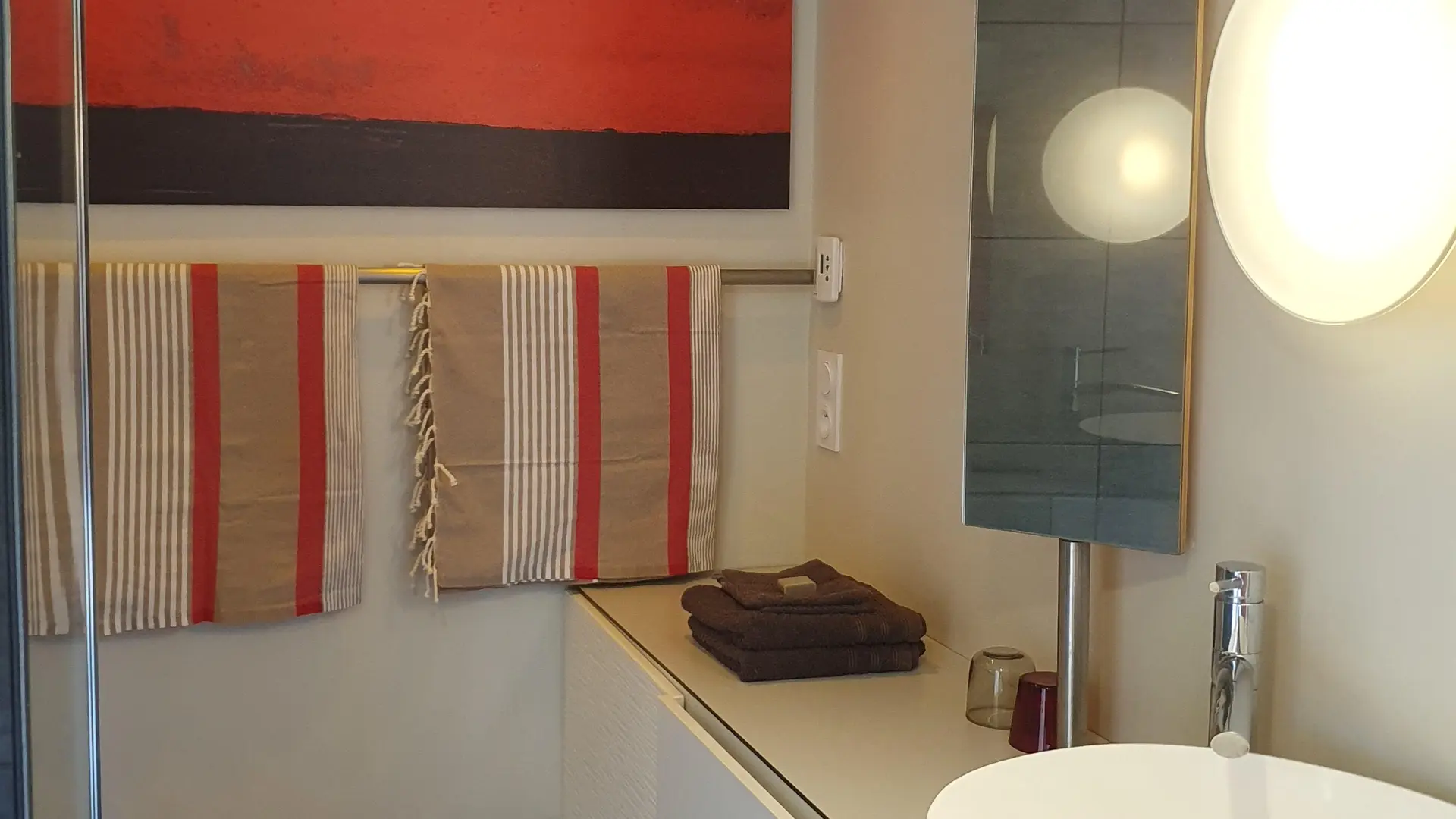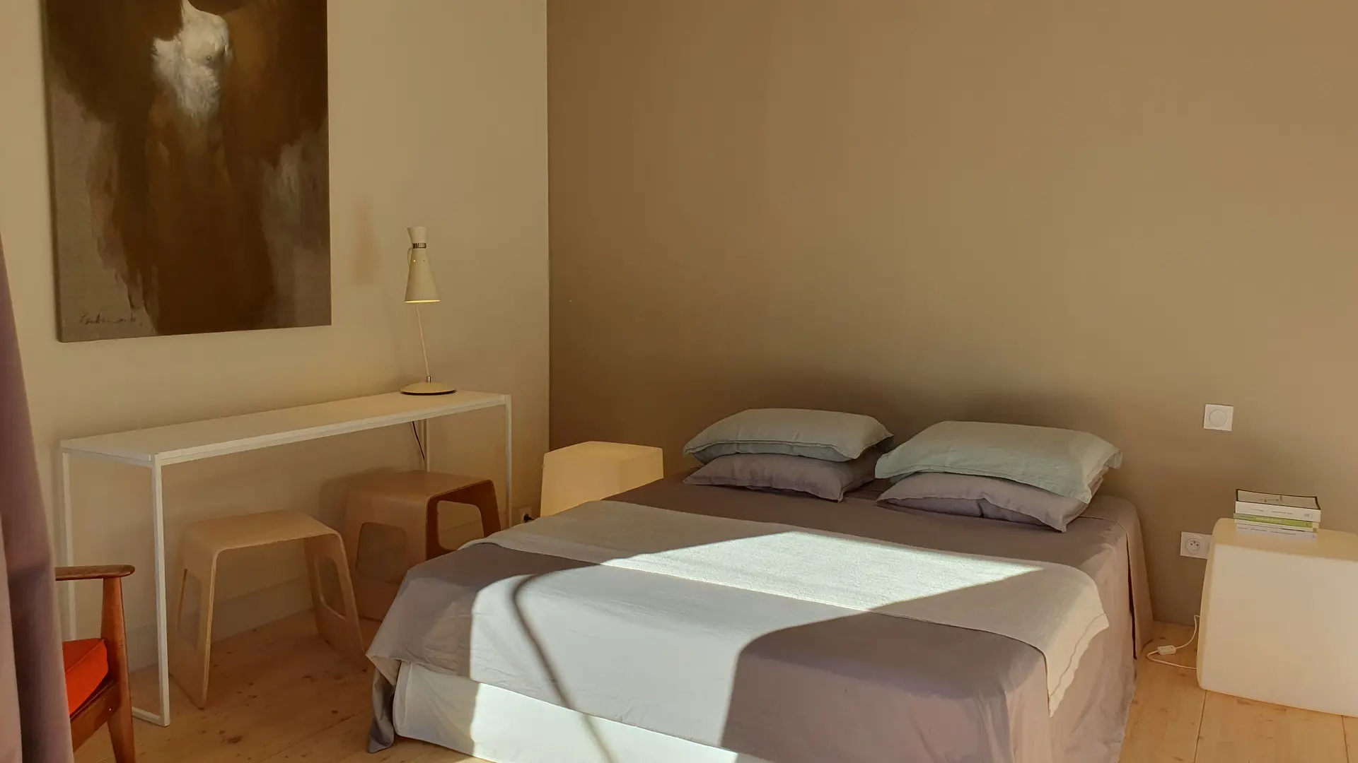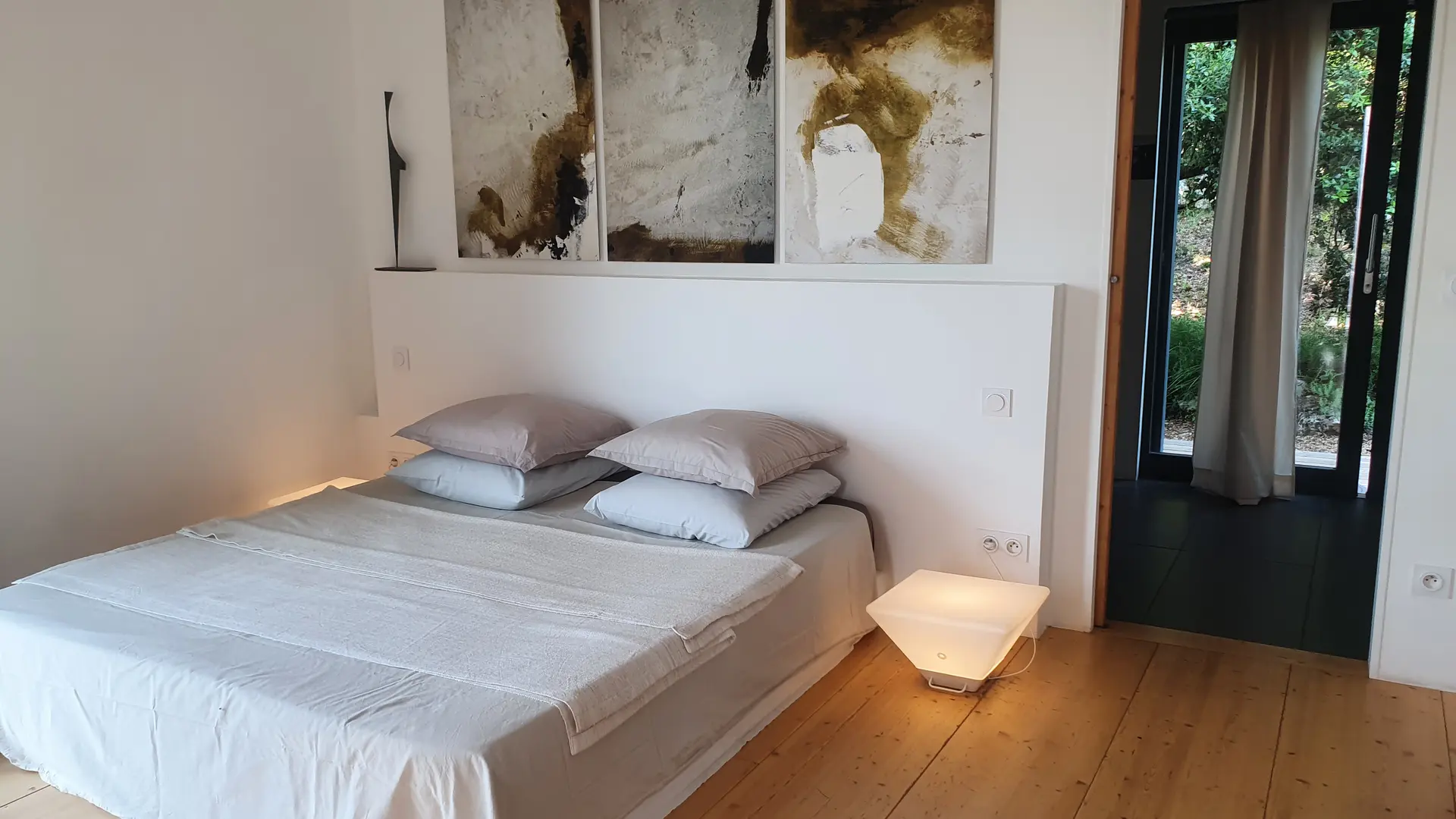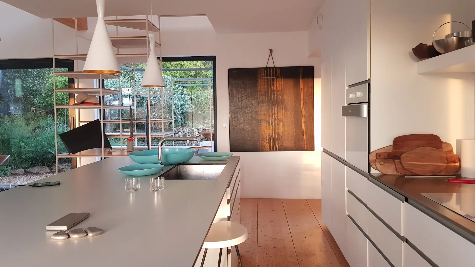 Spacieuse maison contemporaine écologique en bois de 160 m². Décor et confort soignés. Vue dominante sur restanques d'oliviers et collines environnantes. Paradis des cigales et des amateurs de tranquillité. À environ 800m du village de Pontevès.