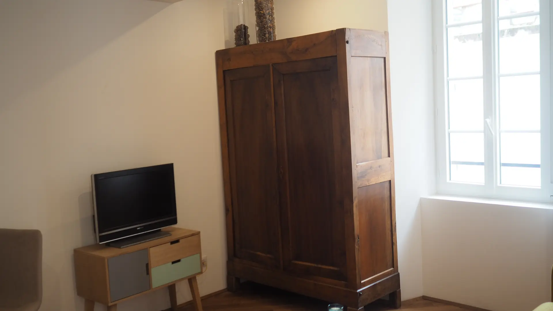 Situé au premier étage d'une maison de village, construite il y a plus de 200 ans et donnant sur la place du lavoir vous serez bercés par les eaux du canal (fenêtre ouverte).