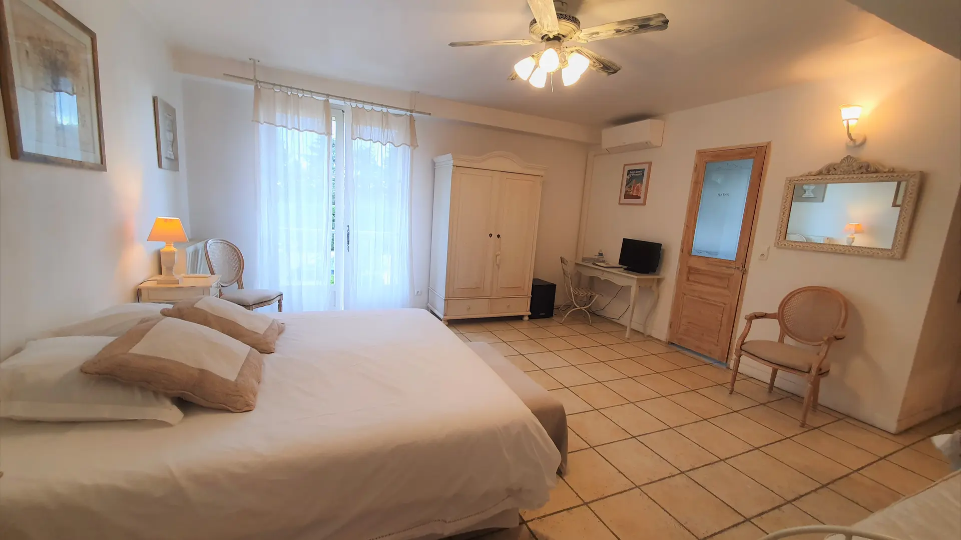 Suites et grandes chambres (2 à 4 personnes de 23 à 38 m²) toutes climatisées avec literie grand confort, bain et/ou douche à l'italienne, WC séparé, TV, Wifi.