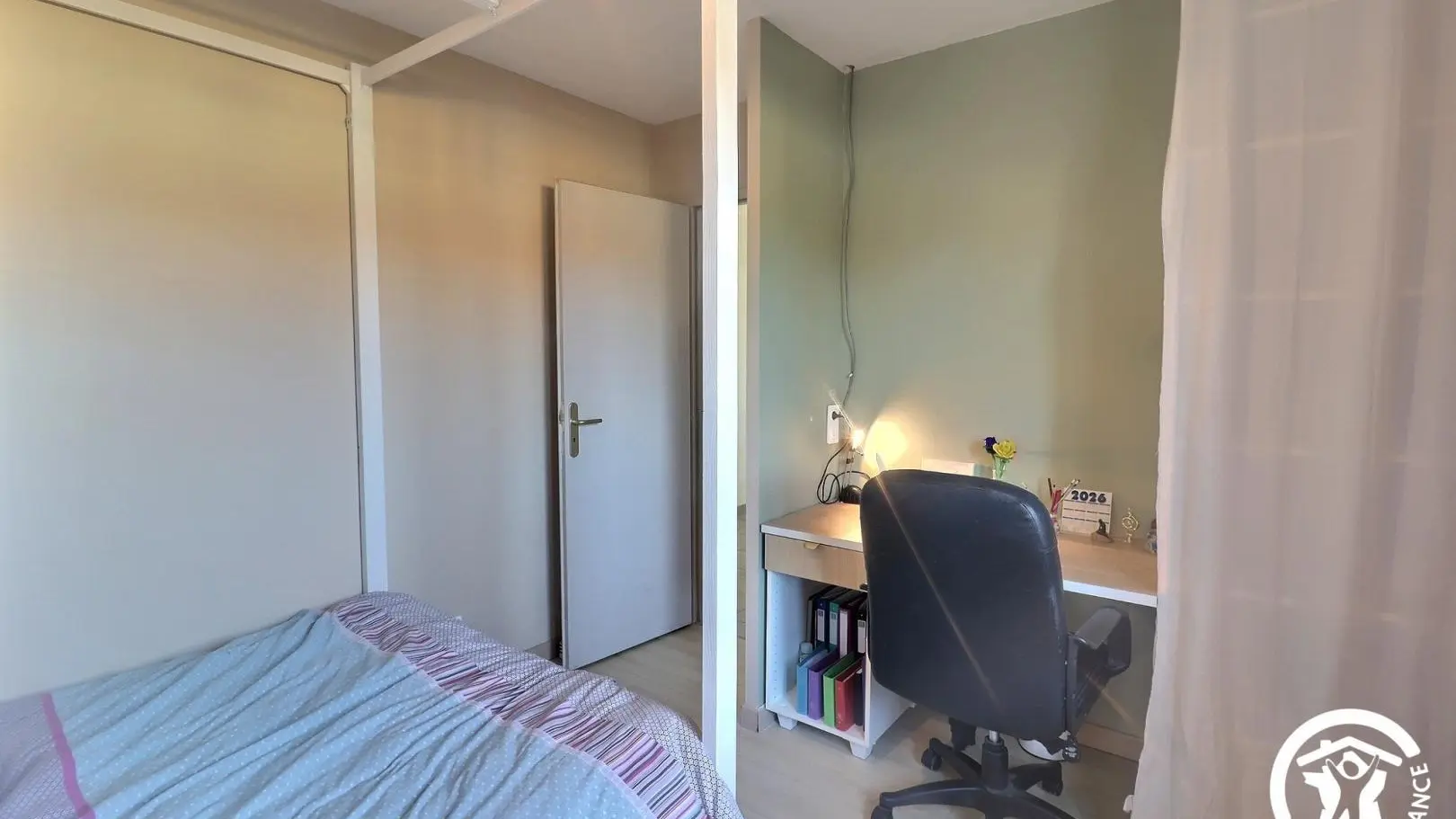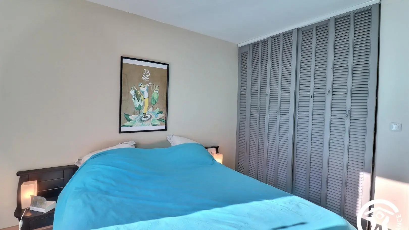 - 1 chambre avec lit 160x200cm et placard.
