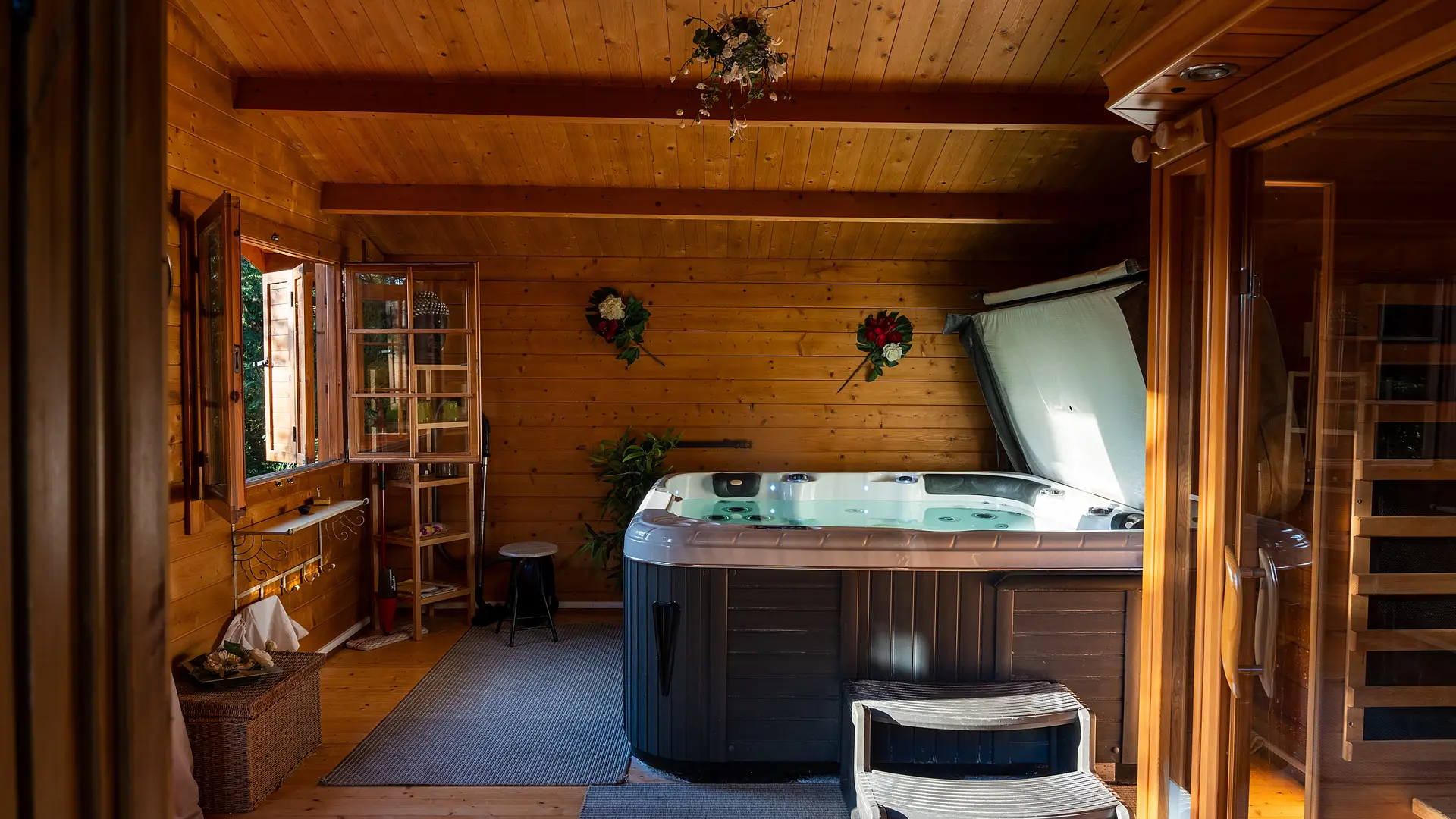Belles chambres décorées avec soin, toutes équipées de salle de bains et de toilettes privatives, à votre disposition salon de détente et cuisine. A la belle saison petits déjeuners servis en terrasse avec vue sur notre parc. Jacuzzi, sauna accessibles de septembre à mai (en supplément).