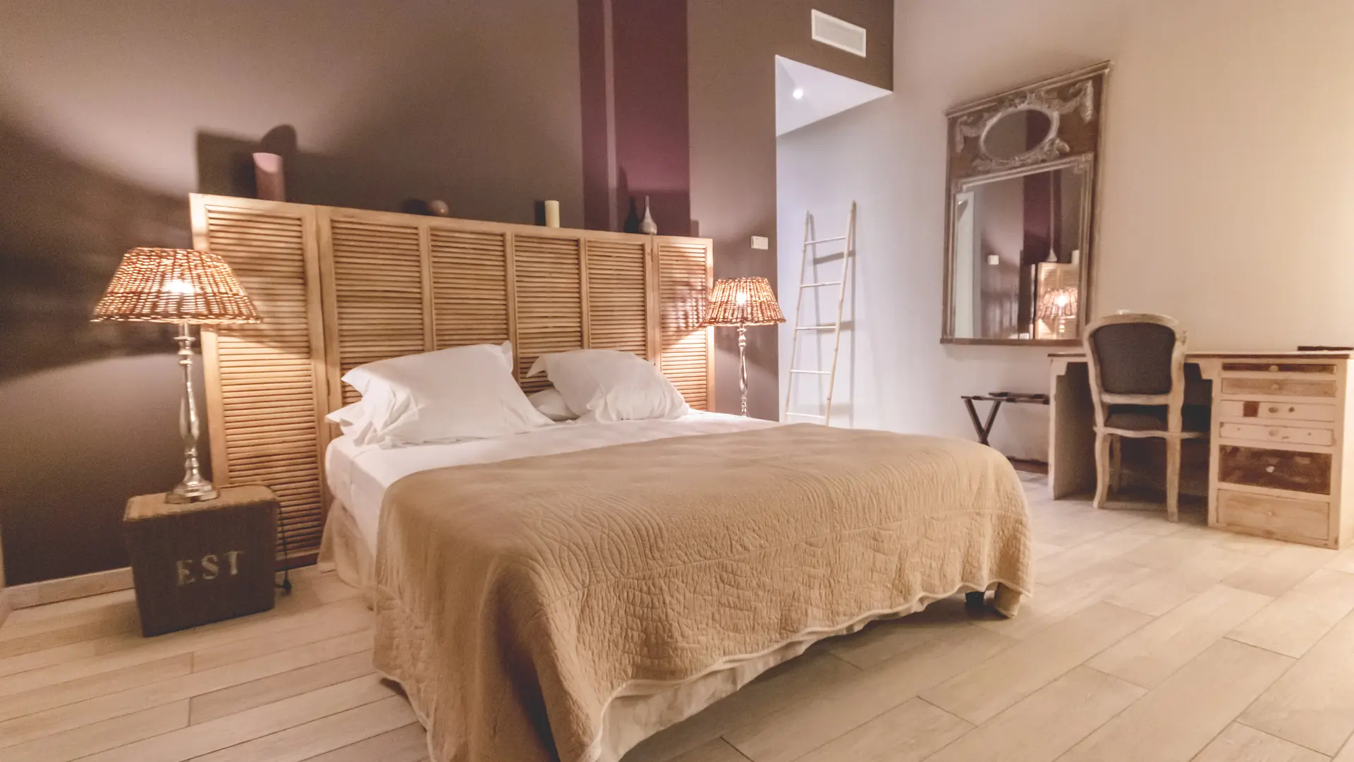 Nous mettons à votre disposition 5 chambres d’hôtes. Situées dans la Bastide, nos chambres d’hôtes à la décoration soignée, inspirée du style provençal, ont une vue sur le jardin paysager, la fontaine Louis XIV et les vignes qui s’étendent au loin. Véritable havre de paix, leur équipement moderne vous apportera tout le confort souhaité.
