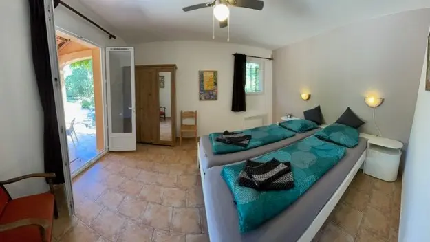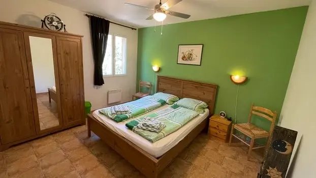 La chambre parentale se trouve au rez-de-chaussé, les trois autres chambres au premier étage.