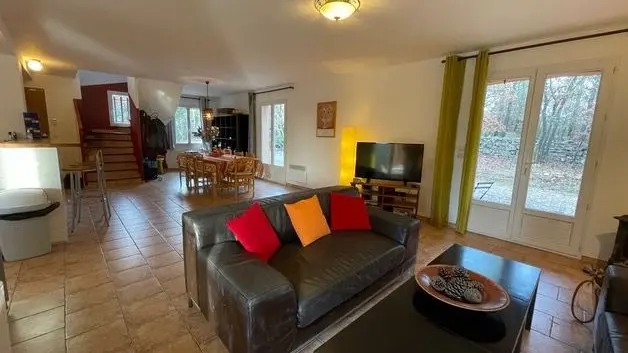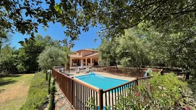 La maison, bâtie en 2006, se trouve sur un terrain arboré de 4 200 m².