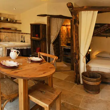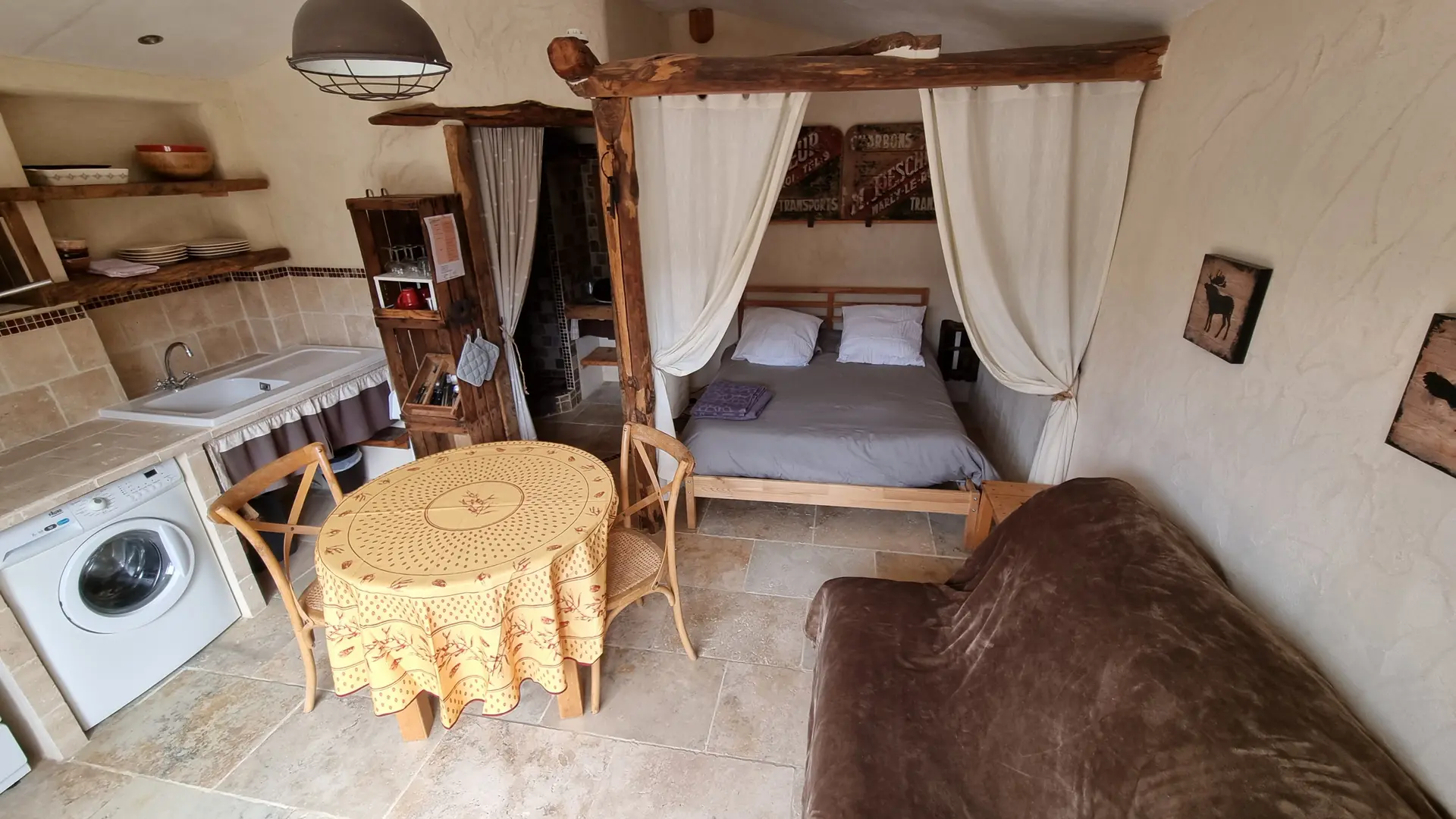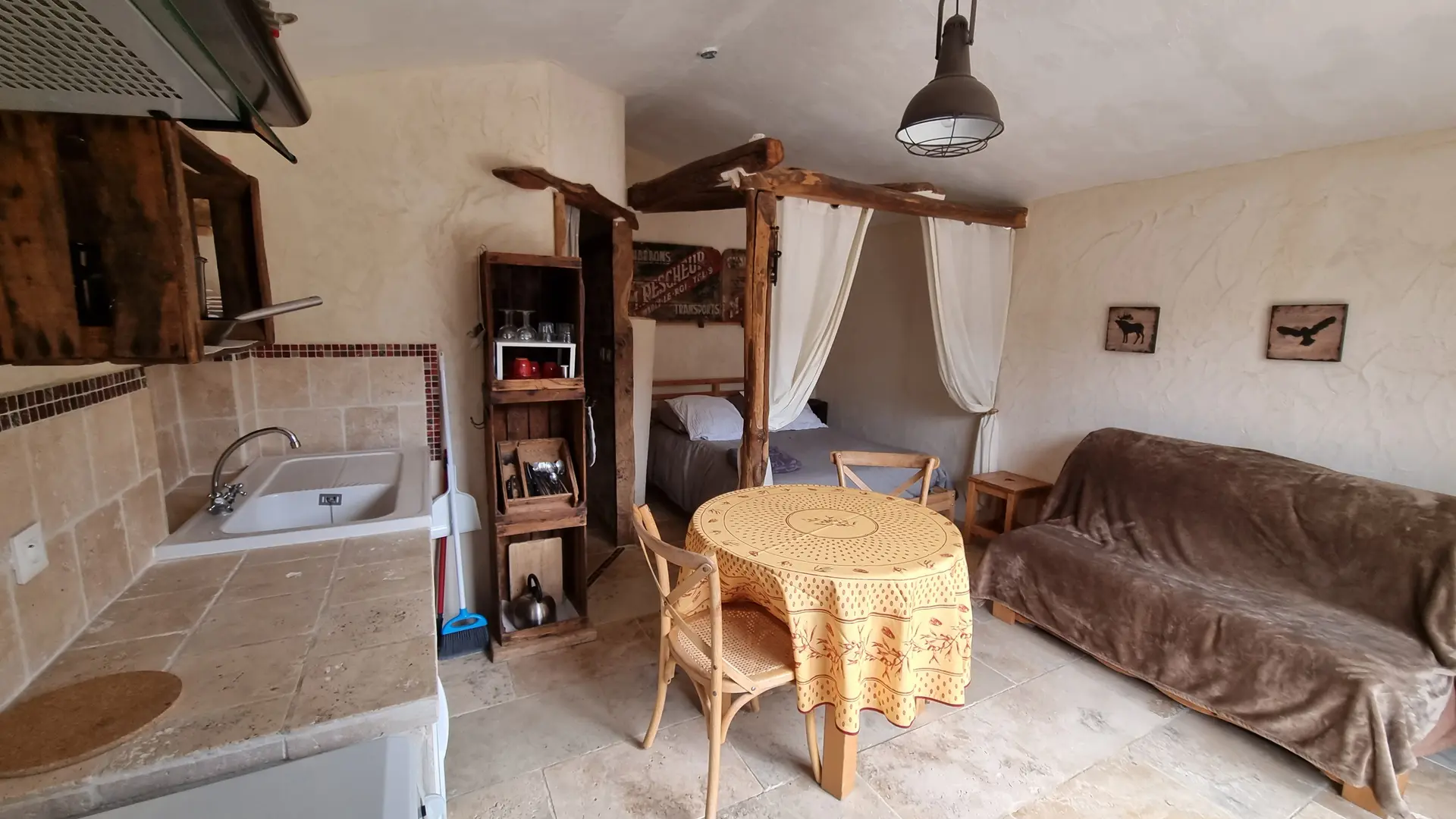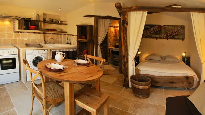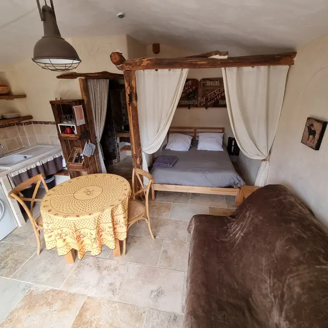 - 1 pièce de vie avec coin cuisine et 1 lit 2 places