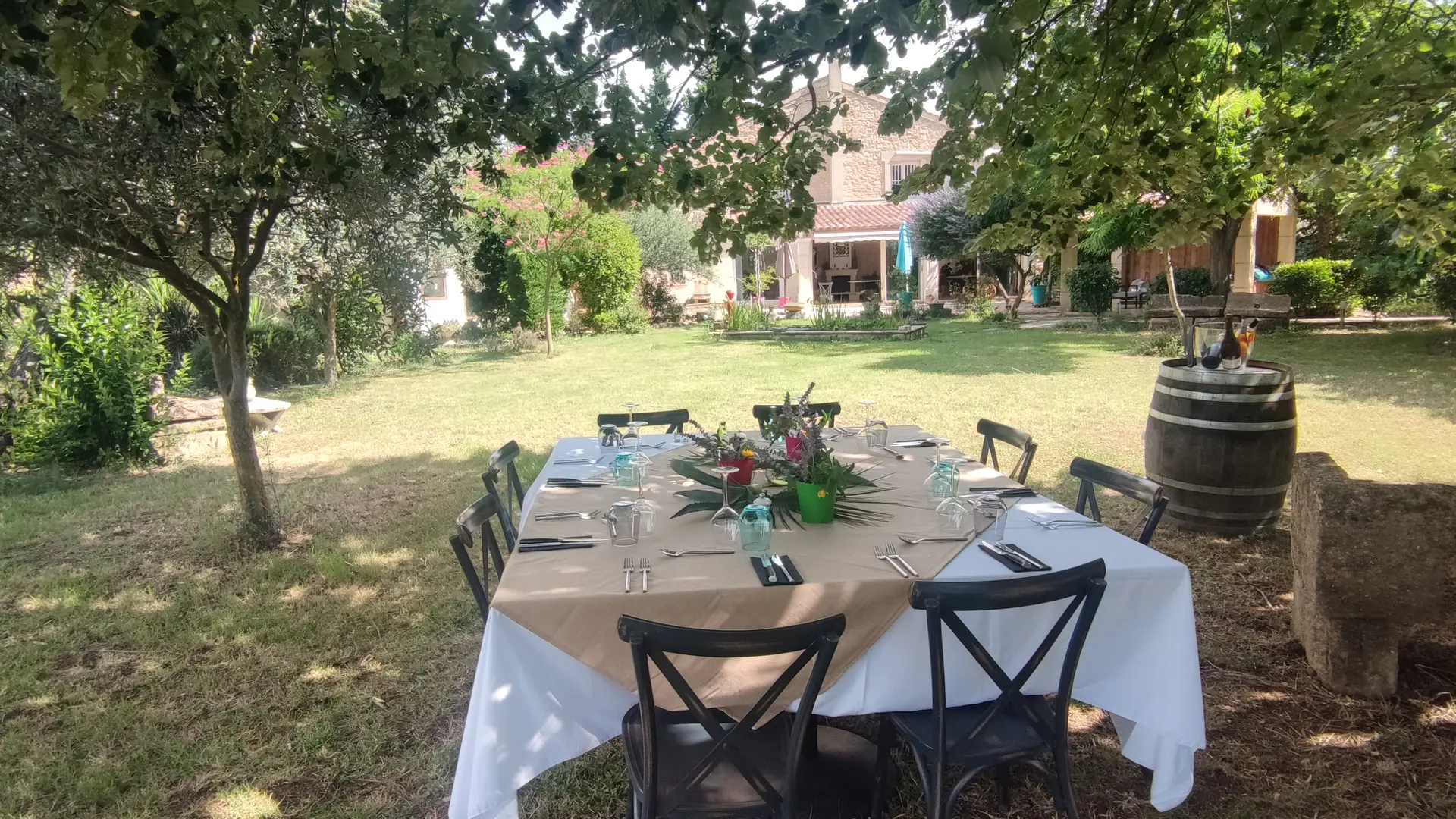 Tente mongole dans le jardin d'un ancien corps de ferme de 400 m2 au milieu des champs, parc de 1,5 hectares, à 20 minutes à pied du centre d'Orange et à 10 minutes des commerces. table d'hôtes tenue par un chef professionnel sur la base de notre potager.