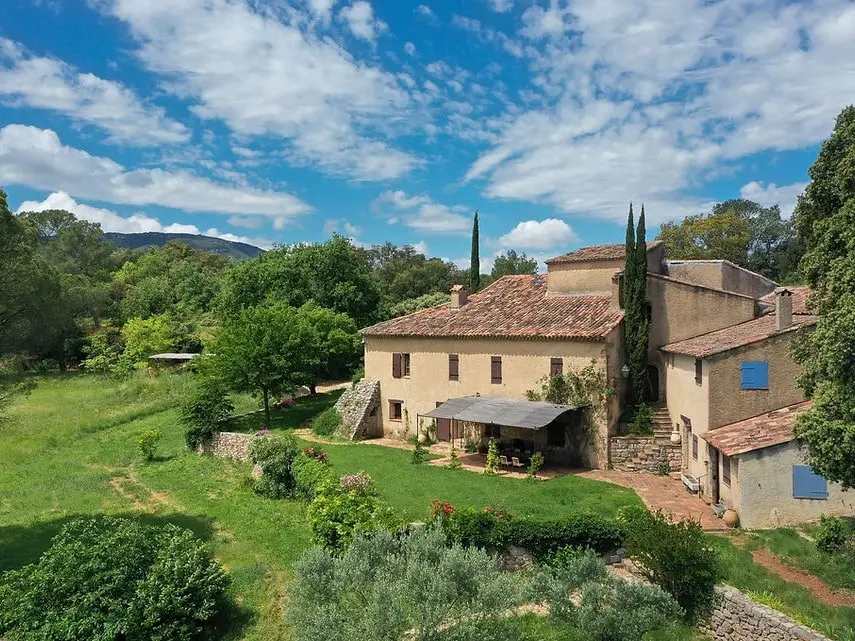 Maison spacieuse de 450 m² plain-pied dans un propriété de 40 hectares avec piscine, située au coeur de la Provence Verte dans le village de Cotignac classé parmi les plus beaux villages de France.