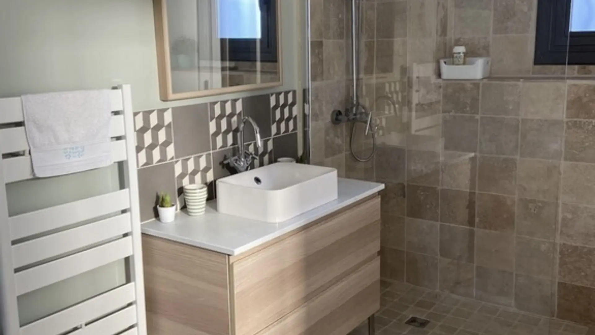 Cuisine entièrement équipée ,3 grandes chambres, dont une de plein pied avec salle d'eau ,et à