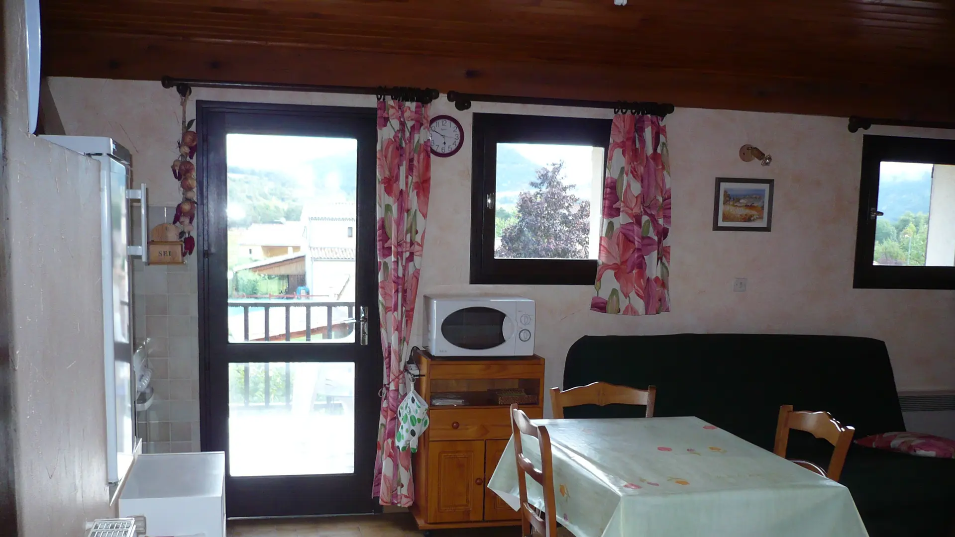 Appartement à l'étage d'une villa située dans un endroit calme, avec une petite terrasse offrant une vue dégagée sur les montagnes. Tous commerces à 500 m.