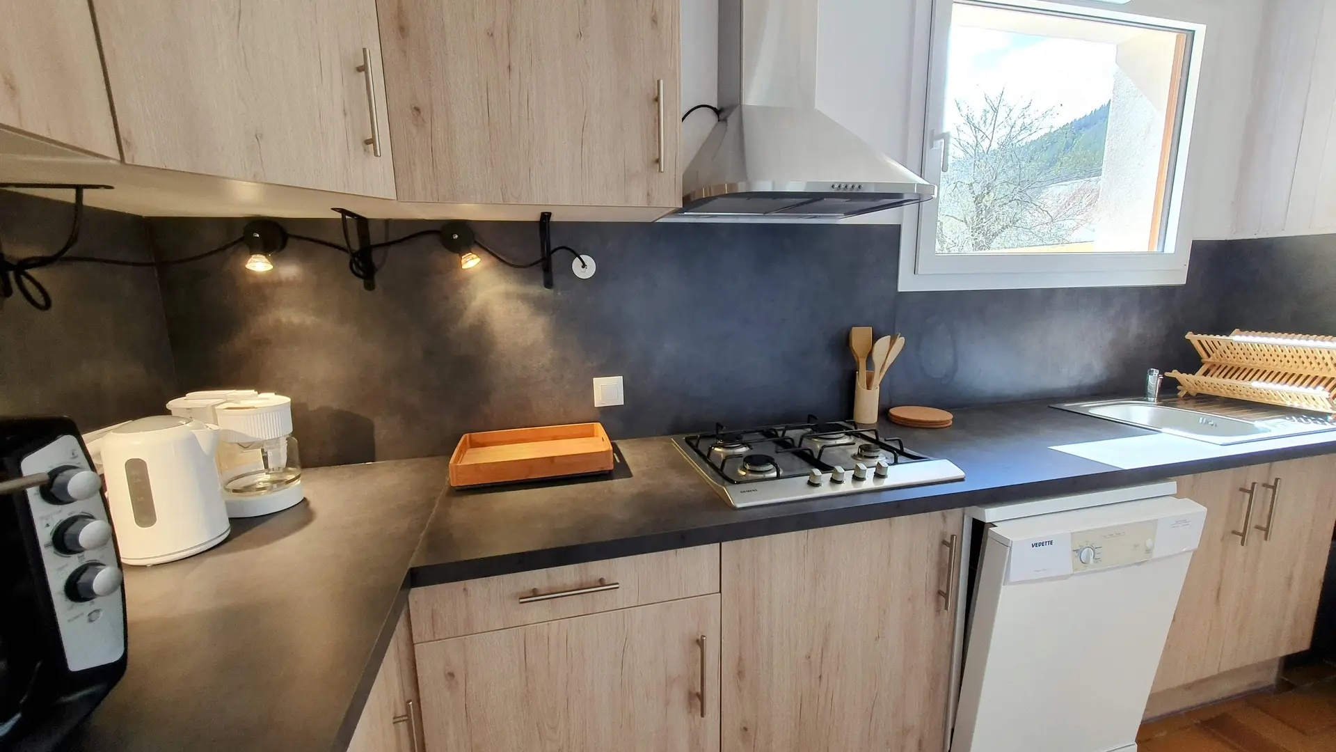 Il est composé d’une cuisine équipée, un salon - salle à manger et deux chambres confortables (surface totale d’appartement 60 m). Idéal pour se ressourcer après une journée bien active sans être à l’étroit.
