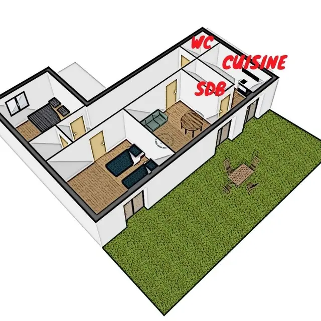 L’appartement se trouve au rez-de-chaussée d'une maison comportant deux locations de vacances (possible de louer un appartement T2 attenant).