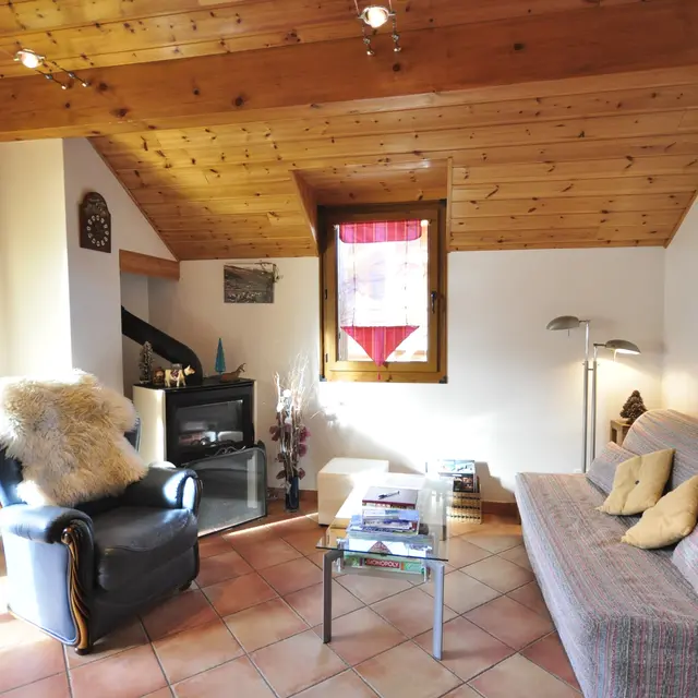Salle à manger, salon avec poêle-cheminée (bois offert), 1 banquette BZ, 3 chambres : 1 lit 140 cm avec sa salle de bain, une avec des lits superposés, et une sous pente avec 2 lits de 90 cm.