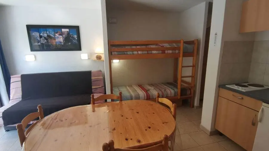 - 1 salon séjour avec canapé lit convertible + 2 lits superposés