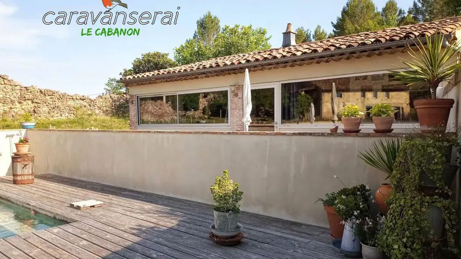 Avec sa vue panoramique sur l'ancien aqueduc et la vieille bastide en pierre, le Cabanon vous ravira par son côté moderne, ses grandes baies vitrées et son intérieur bois.
