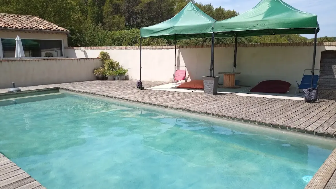 Une terrasse en bois privative vous est réservée à proximité de la piscine.