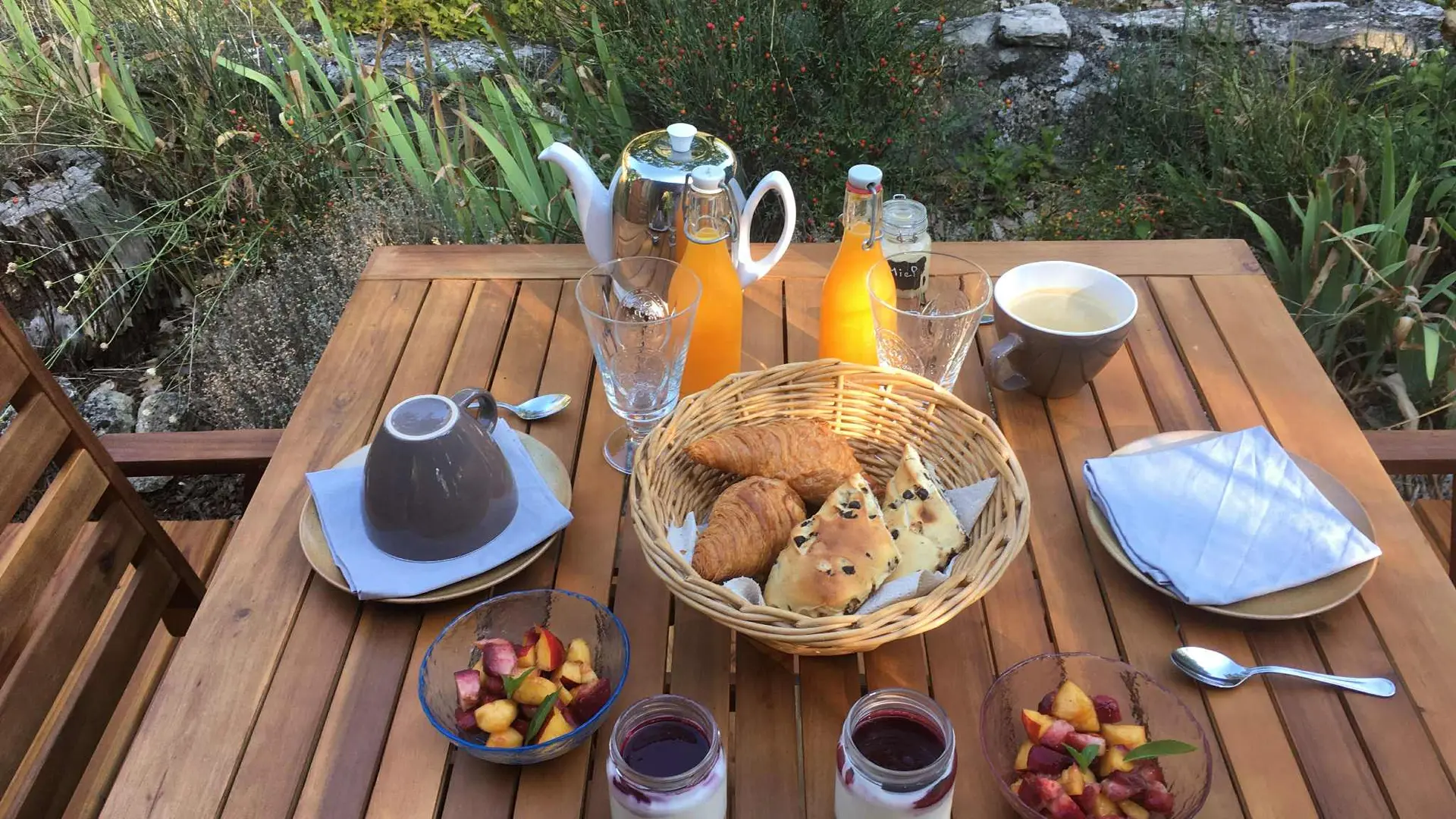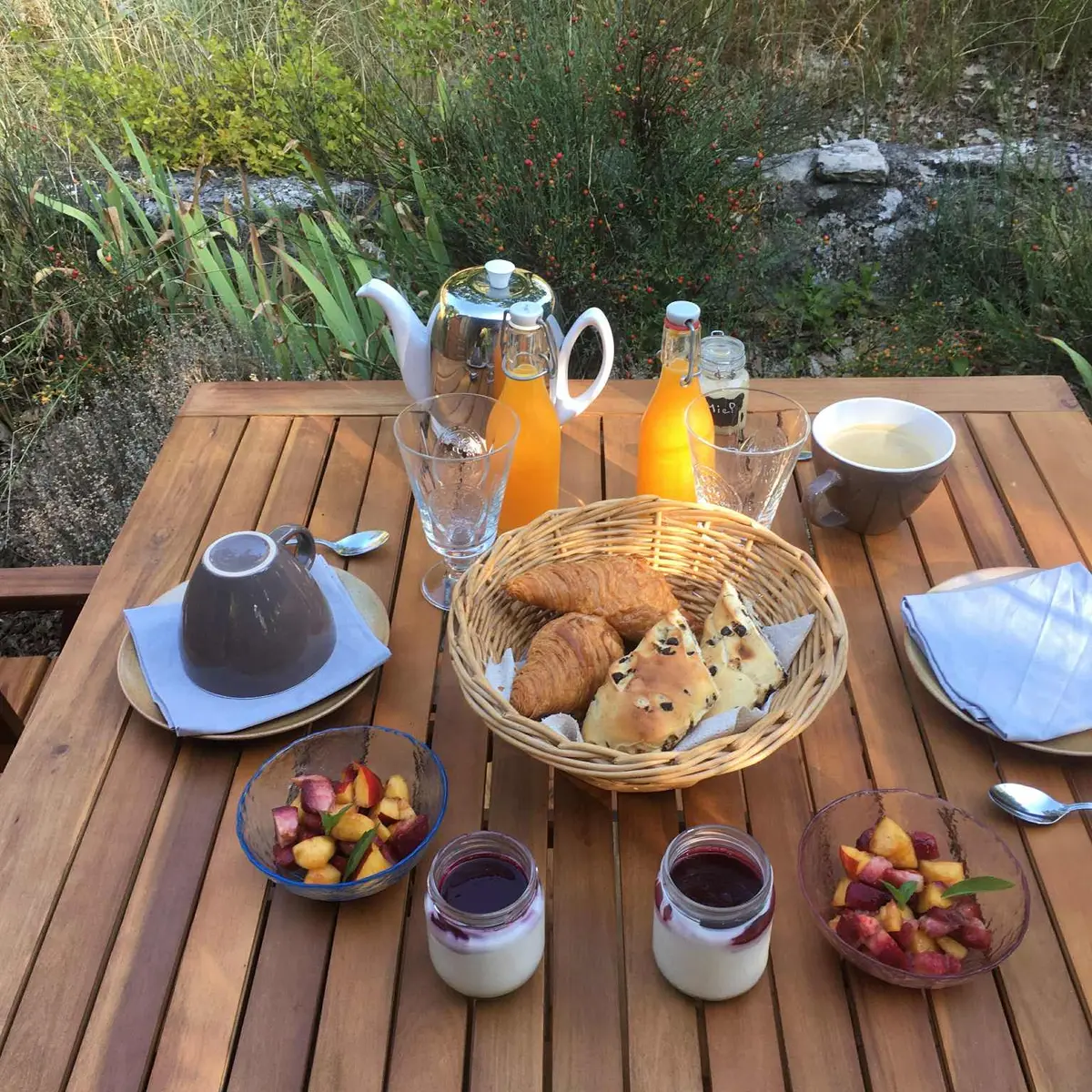 Petit-déjeuné en supplément à 15e par personne (du fait maison et des produits locaux).