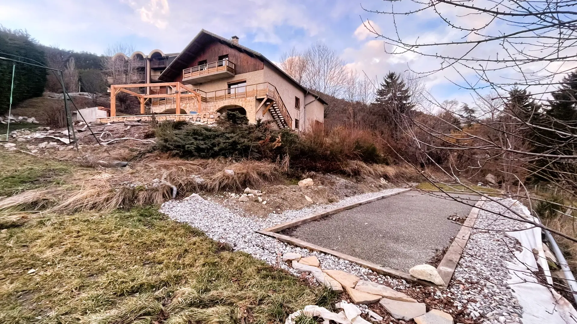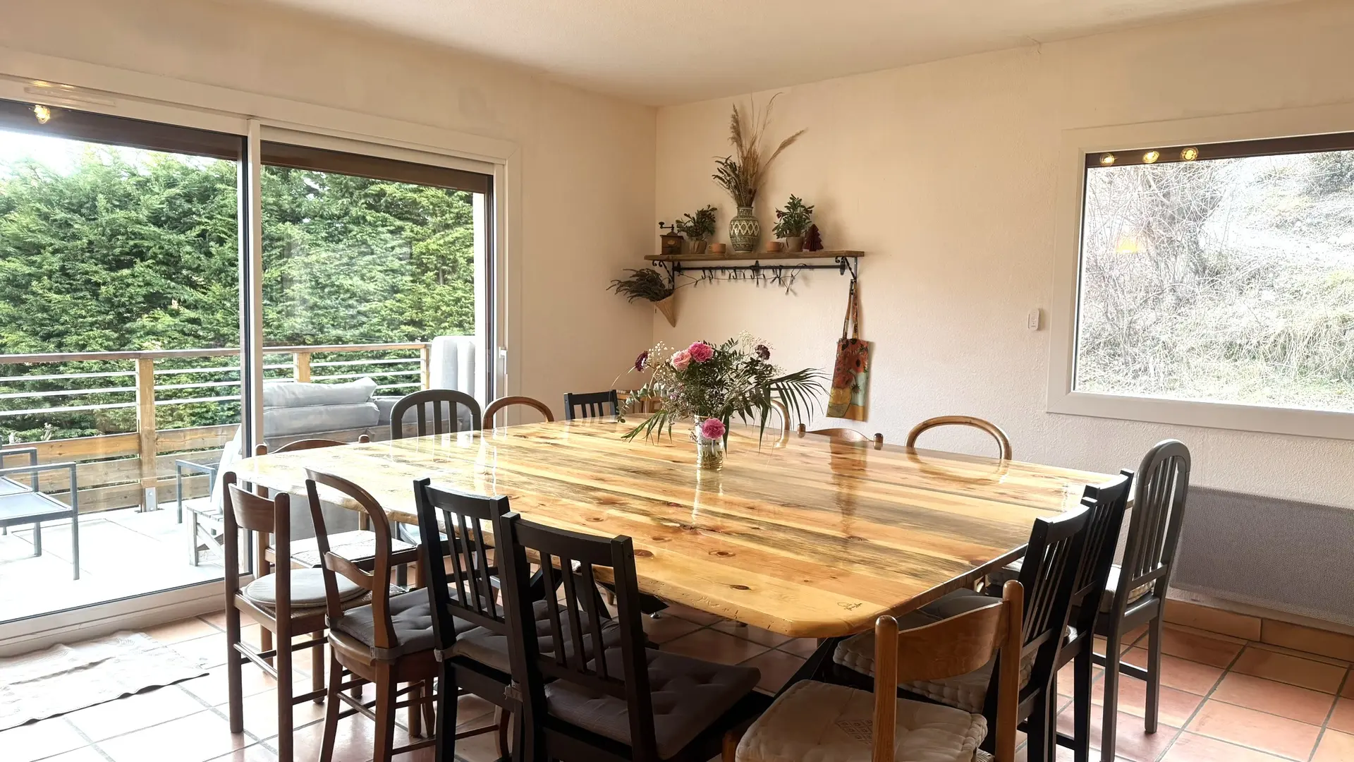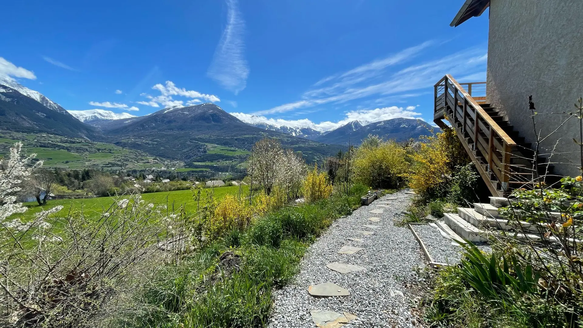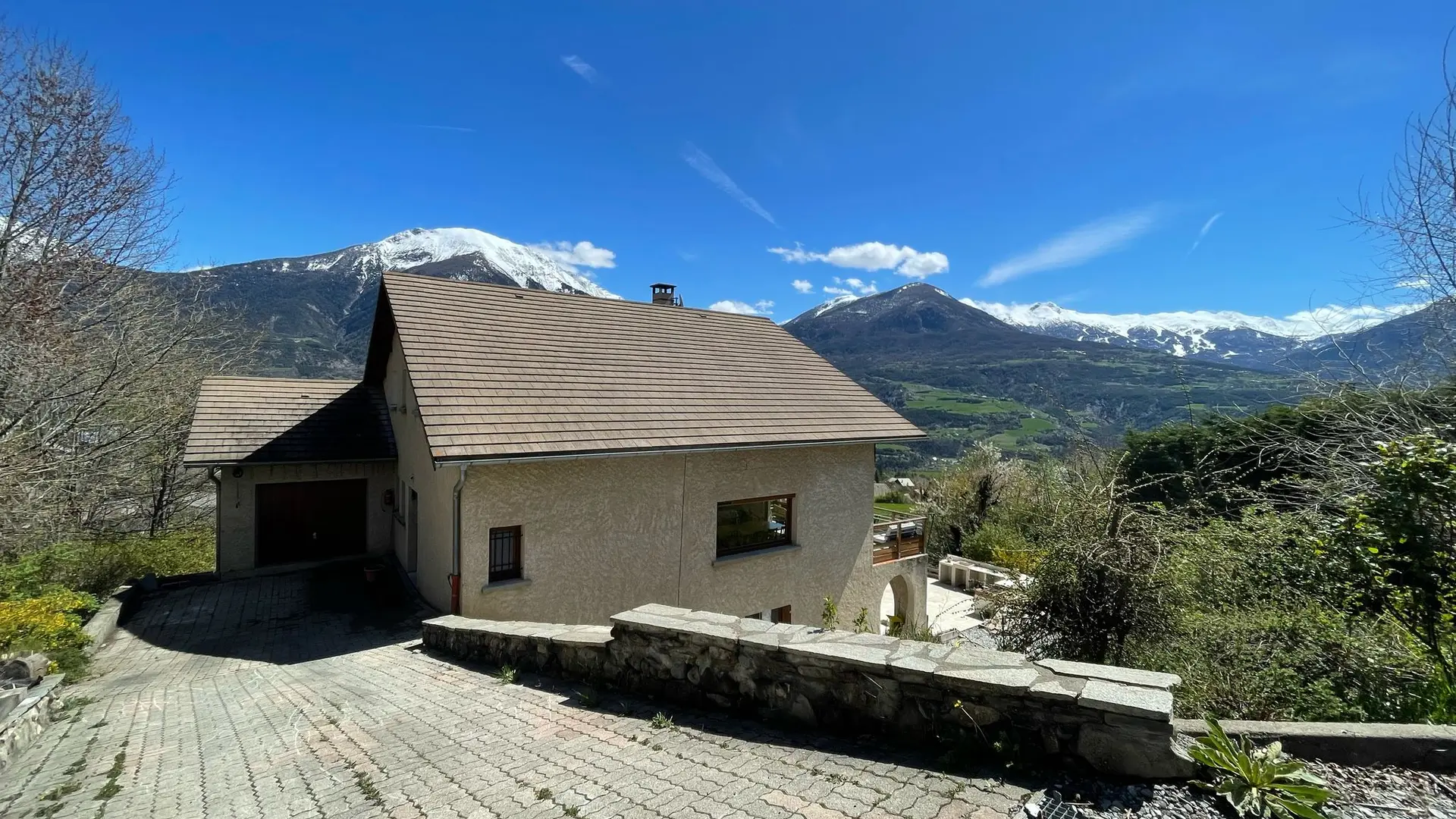 La terrasse et le balcon, surplombant un terrain de 2 000 m², vous offriront une vue imprenable sur les montagnes.