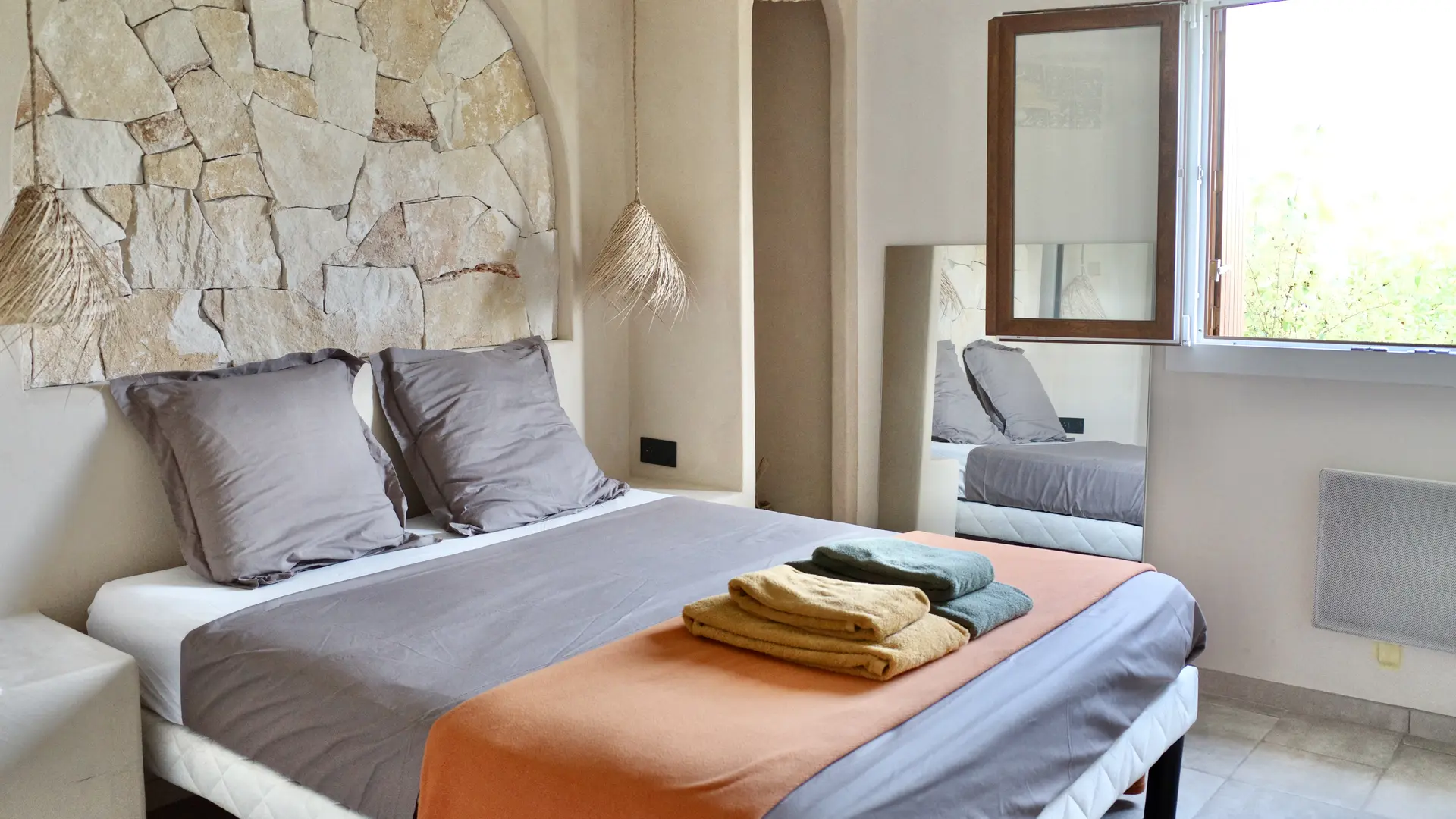 • Une chambre avec un lit double