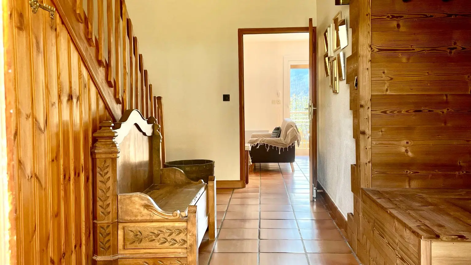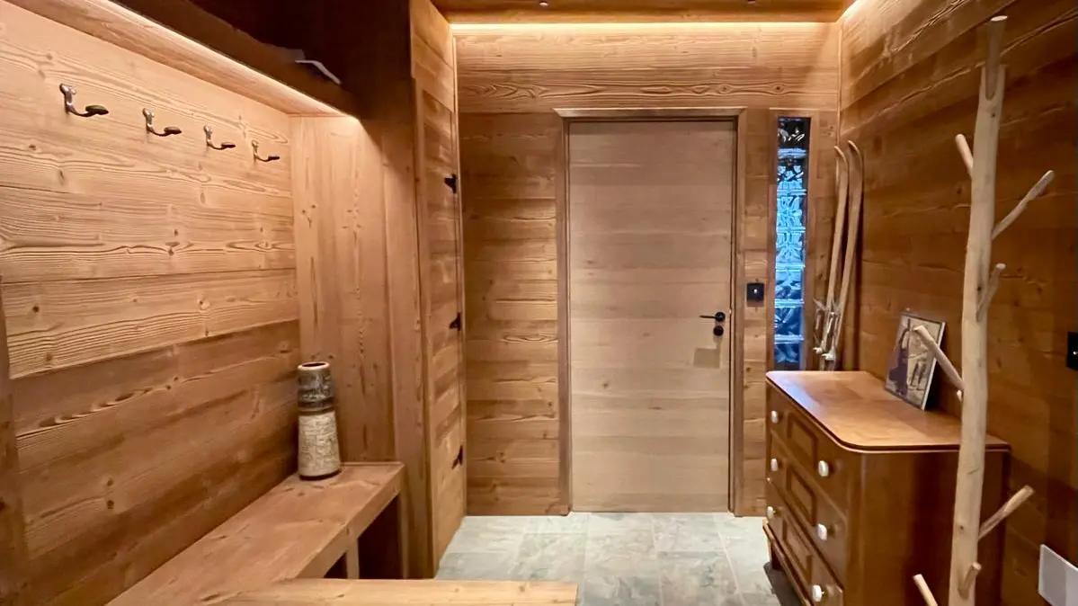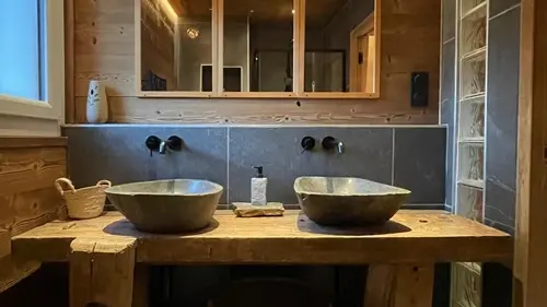Vous disposez au total de 3 salles de bain, 3 WC, ainsi qu’un vestiaire. Toutes les pièces de vie sont orientées sud-est, baignées de lumière, avec une vue panoramique sur les montagnes.