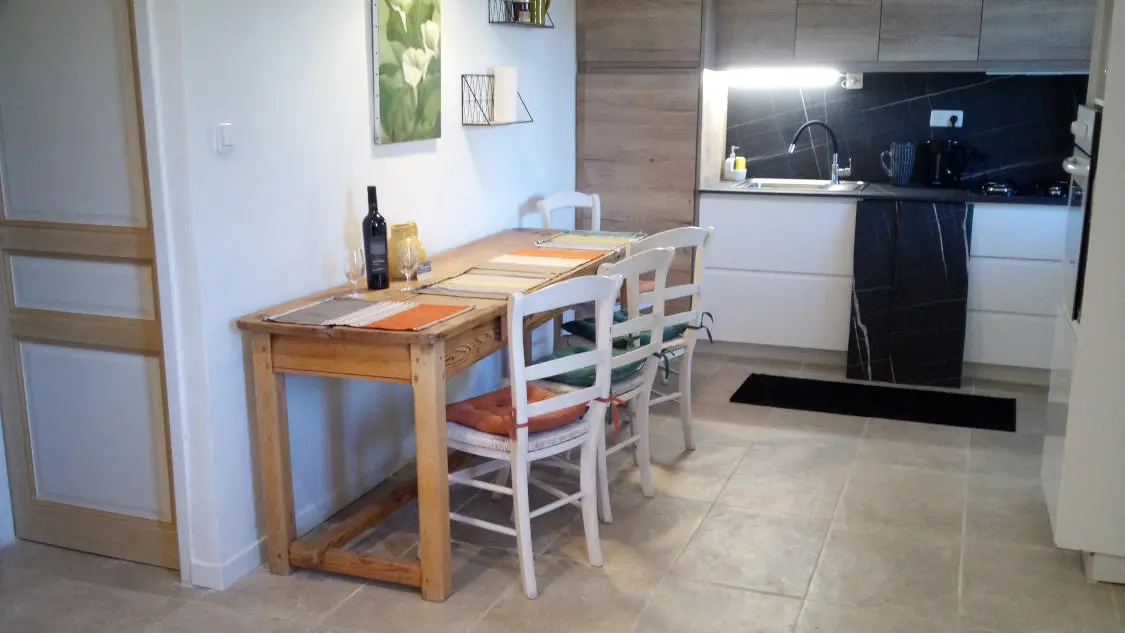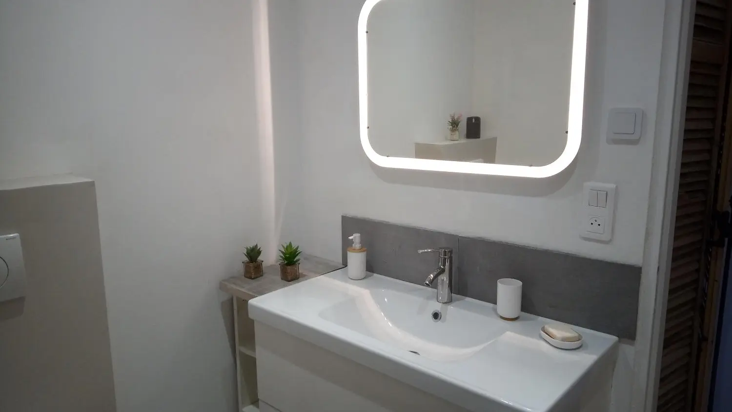 Découvrez ce charmant appartement refait a neuf avec des matériaux de qualité et une décoration pensée et conçue par Laurence la propriétaire. Il donne sur une terrasse privative avec salon de jardin et plancha et ouvre sur le parc arboré commun.
