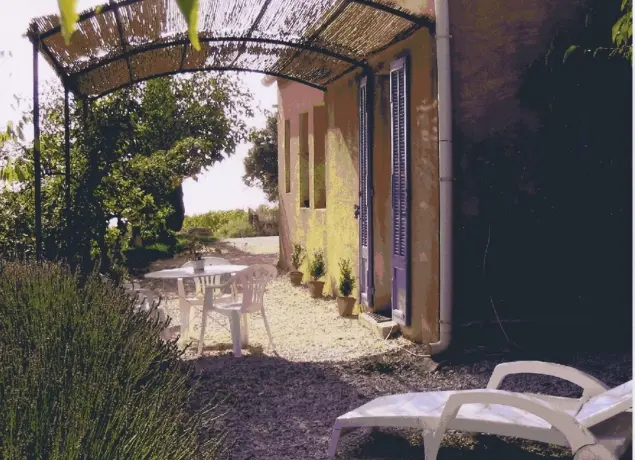 Logement indépendant avec jardin non clôturé privé, au cœur du vignoble, vue panoramique sur les Dentelles de Montmirail et le Ventoux. Au rez-de-chaussée, séjour avec coin cuisine, salle d'eau et WC. A l'étage : mezzanine 2 lits 1 pers et 1 lit 2 pers.