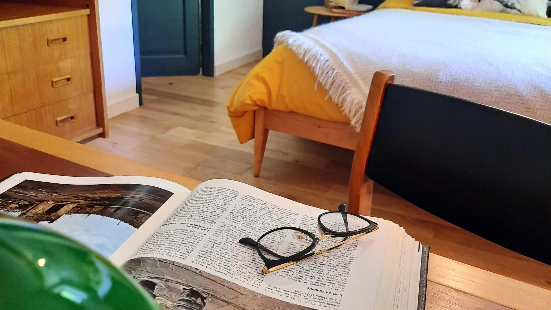 Le gîte « L’Auberge de Marie » se situe au 1er étage de la ferme. Ancienne habitation de famille, ce bel appartement de 60m² a été restauré en conservant un esprit rétro.