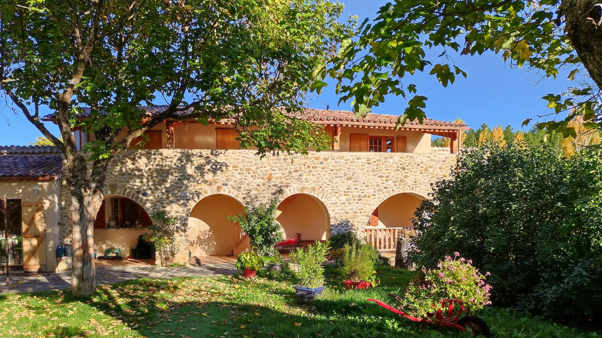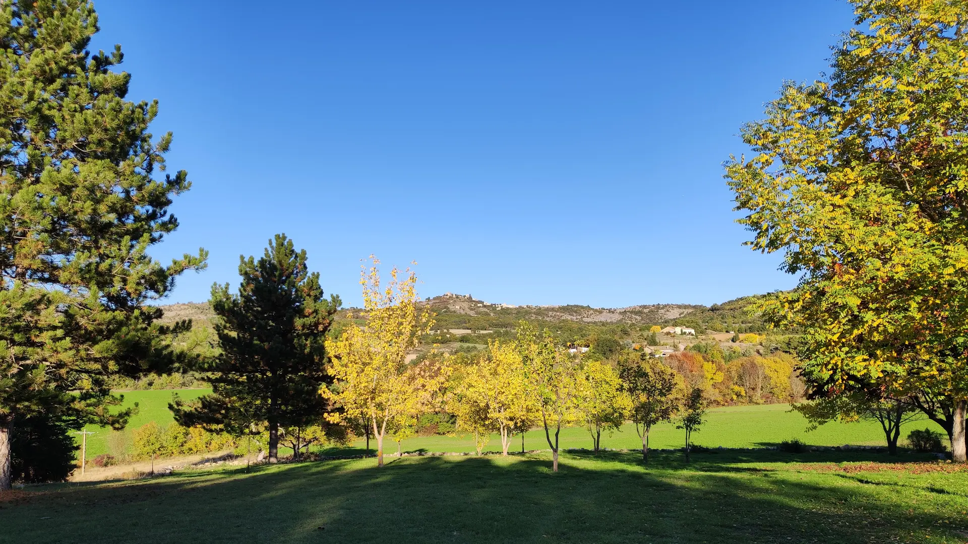 Sur 2 ha de terrain, facile d'accès, la maison jouit d'une grande quiétude et d'une puissante sensation d'espace lorsque le regard porte sur les montagnes ou le petit village de Sigoyer avec son château-fort médiéval.