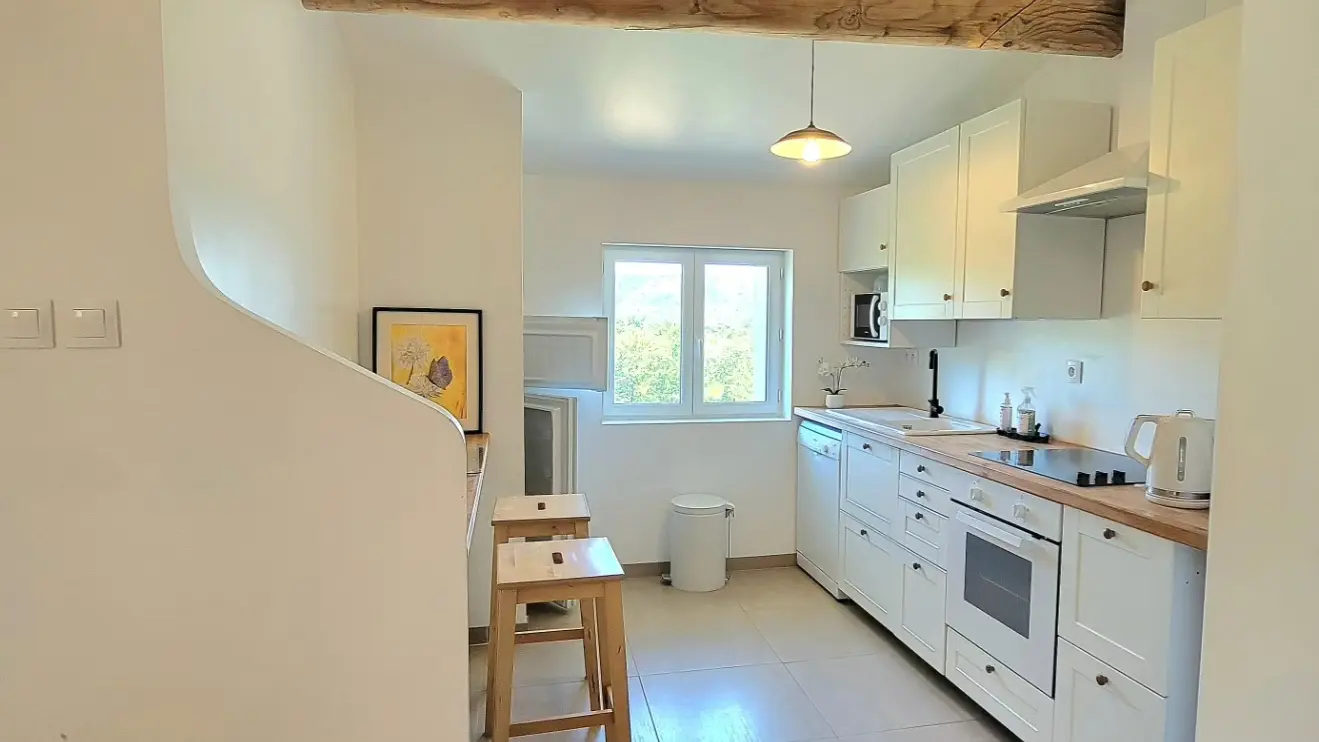 Unique! Dans l'adorable hameau de caractère SAINT-JURSON, paisible, à l'étage d'une jolie bastide ancienne du 17ème, en pierre, entièrement restaurée (La Bastida Flora), une maison d’artiste, le Gîte Bélà Vista est un élégant appartement de 70 m² avec une terrasse couverte orientée Sud et Ouest la vue est magnifique! 2 chambres. (de 4 à 6 pers)