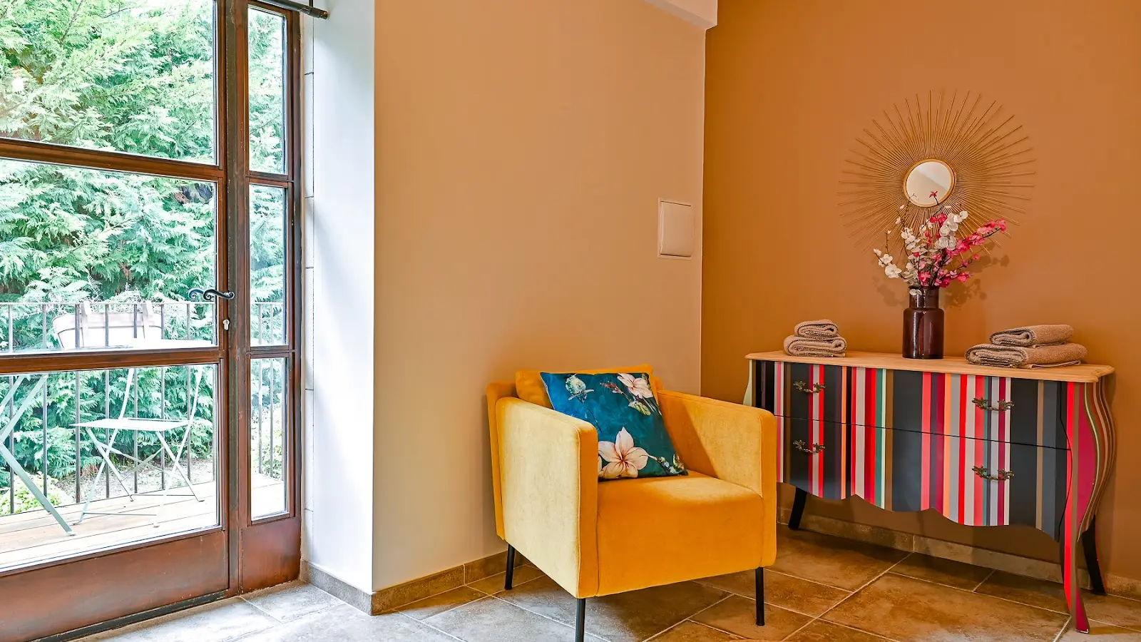 L'accès à la location est indépendant, vous pourrez également profiter d'une terrasse privative , de la vue sur le jardin et de la piscine.