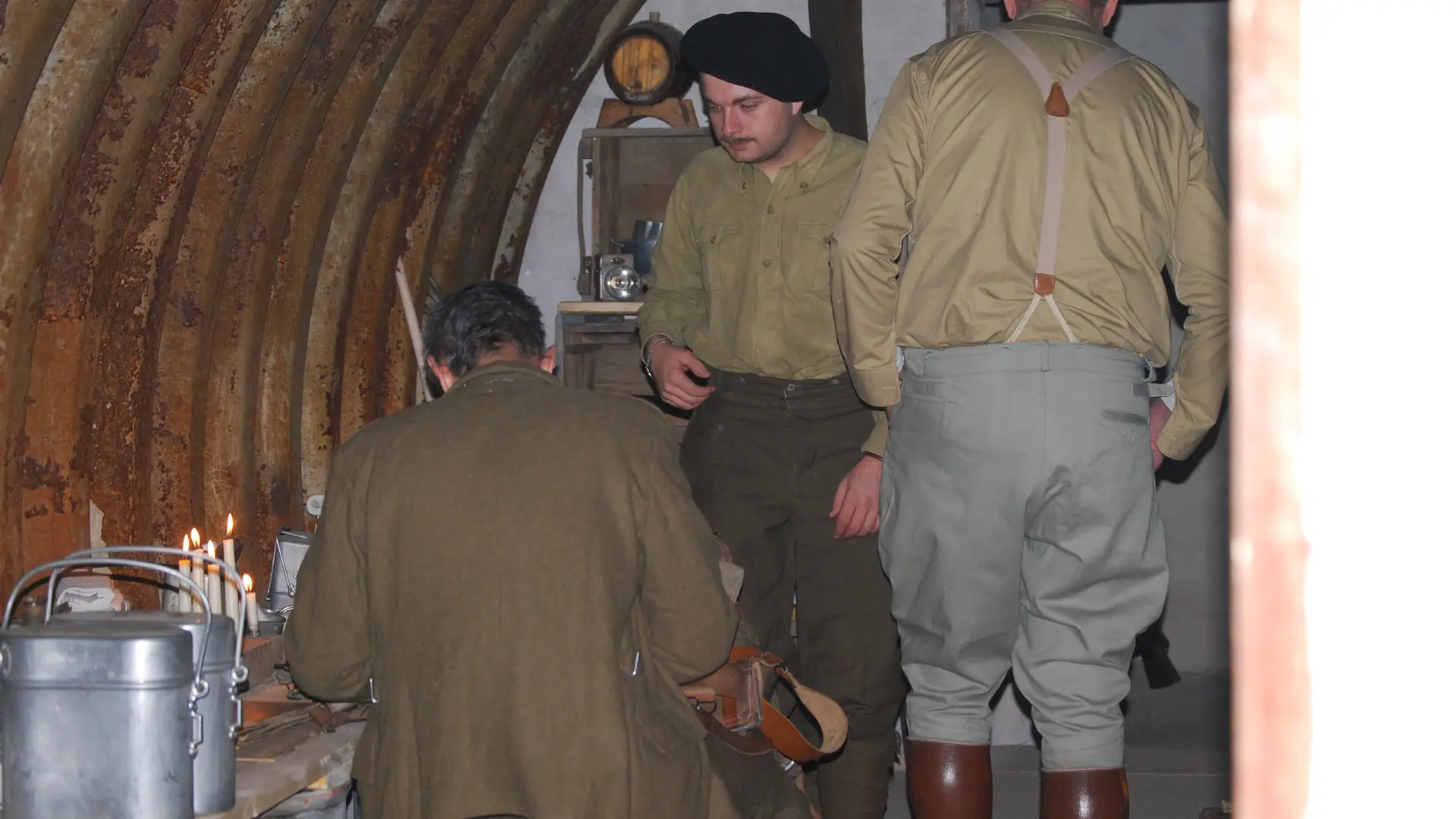 A l’intérieur, tout est reconstitué comme si les occupants de l’époque venaient à peine de partir; lits superposés, paillasses, couverture en laine, gamelles règlementaires, cuisinière à bois, uniformes, téléphone, cartes etc ...