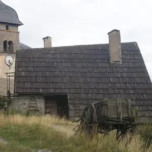 Logement récent à l'étage d'une maison très ancienne en haut du village de Plampinet.