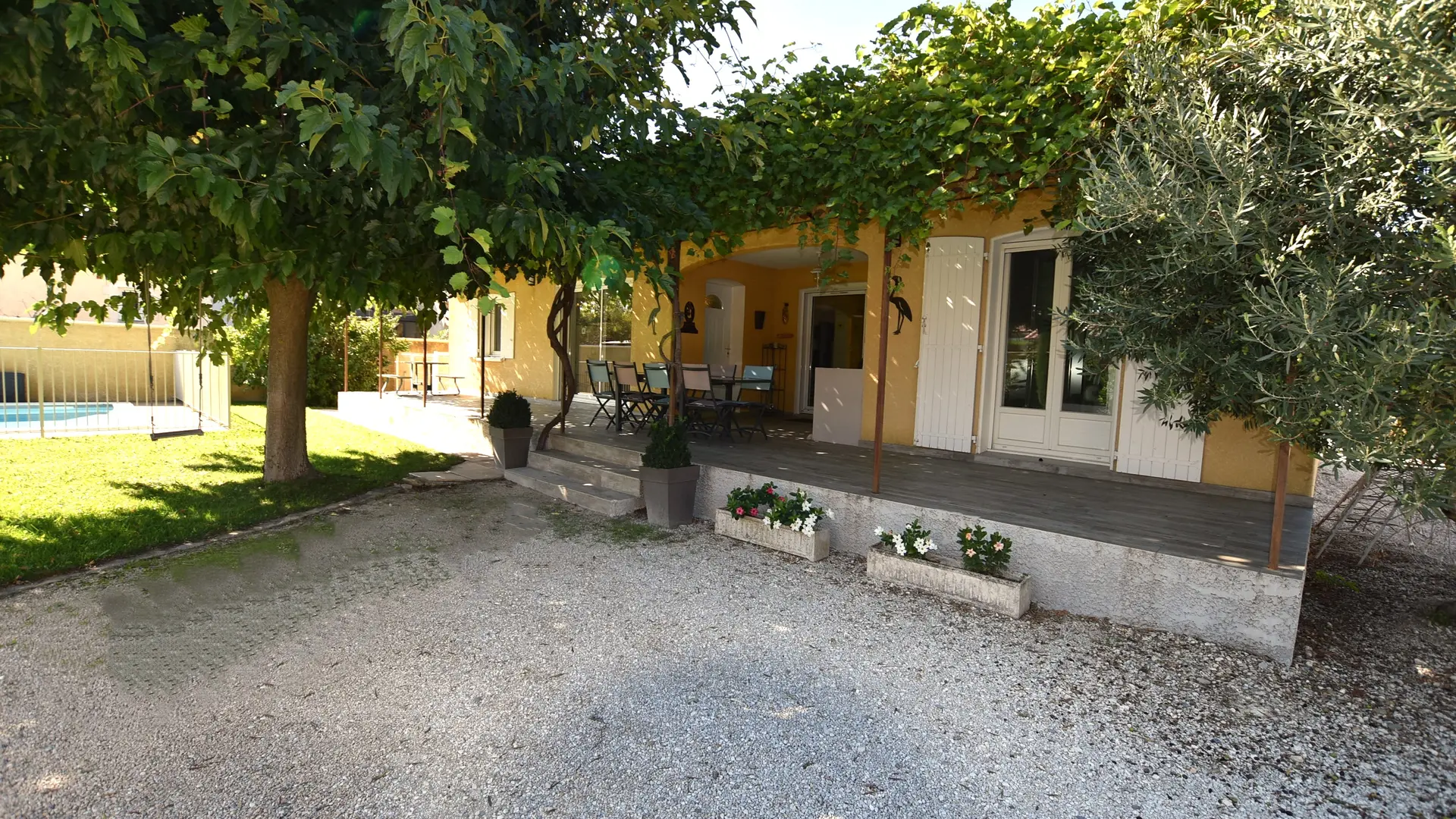 Vous avancerez dans la propriété sécurisée, voitures abritées, jardin paysagé, les senteurs, les cigales, l'ombre lourde de l'été, une piscine clôturée (dimensions 4mX5m, profondeur 1,40m, avec système au sel), un coin plancha, l’olivier contemplatif, un espace de calme et de bien-être… Les vacances commencent !