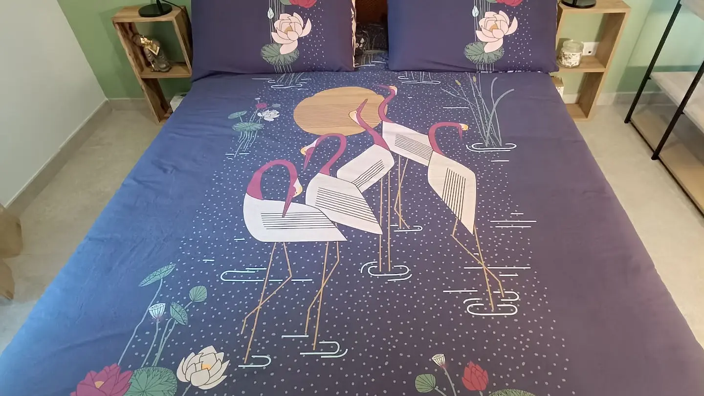 > Chambre avec lit 2 personnes dressing, baie vitrée avec accès sur le jardin