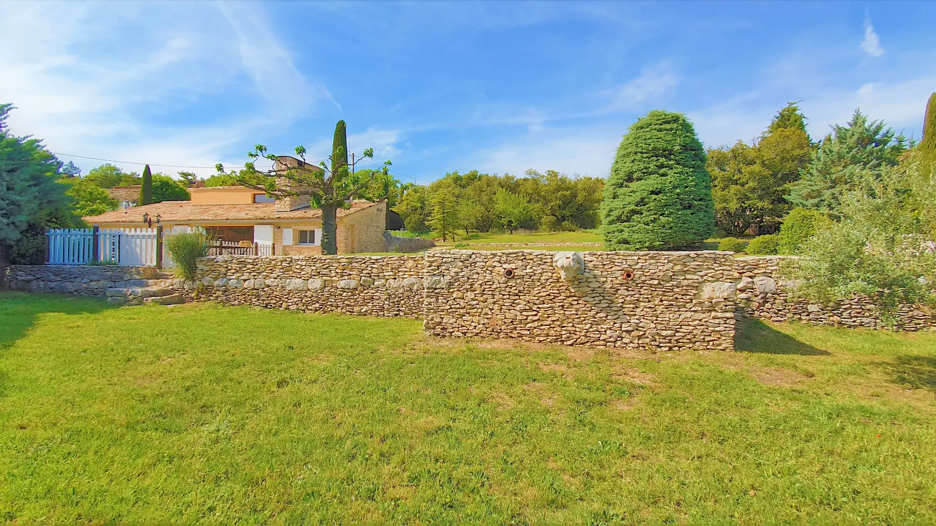 Entourée d'un grand terrain planté de chênes et d'oliviers.