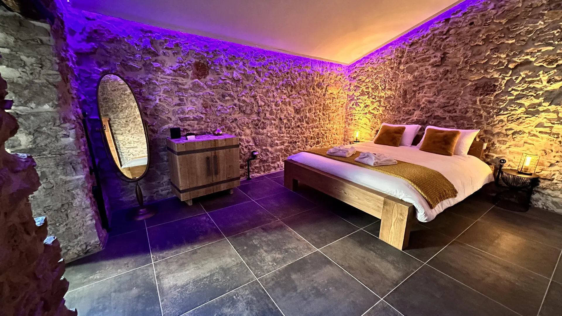 Découvrez la Clef des Sens, un loft de 60m² avec baignoire balnéo pour 2 et sauna privatifs à infrarouge.